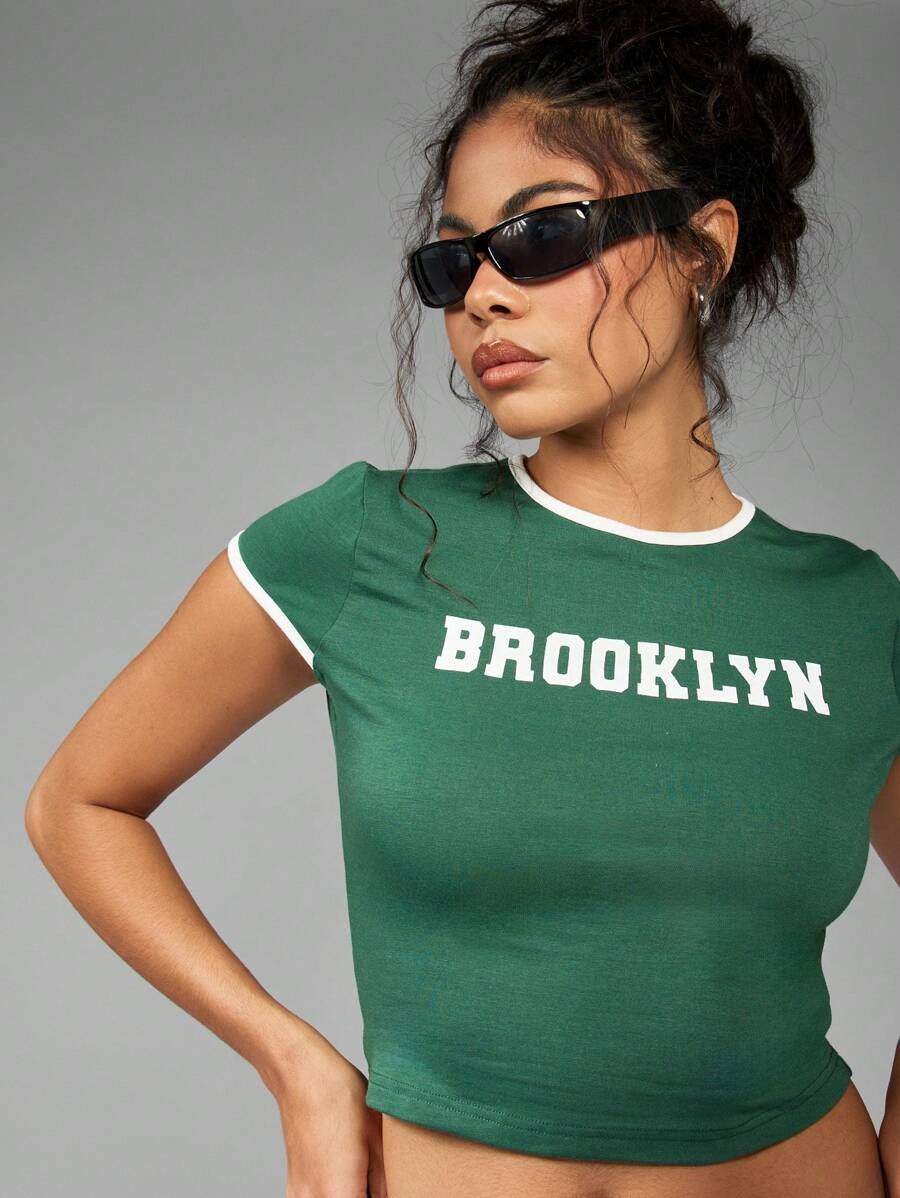 Brooklyn Athletic Baby Tee Retro 90s Varsity Style Crop Top