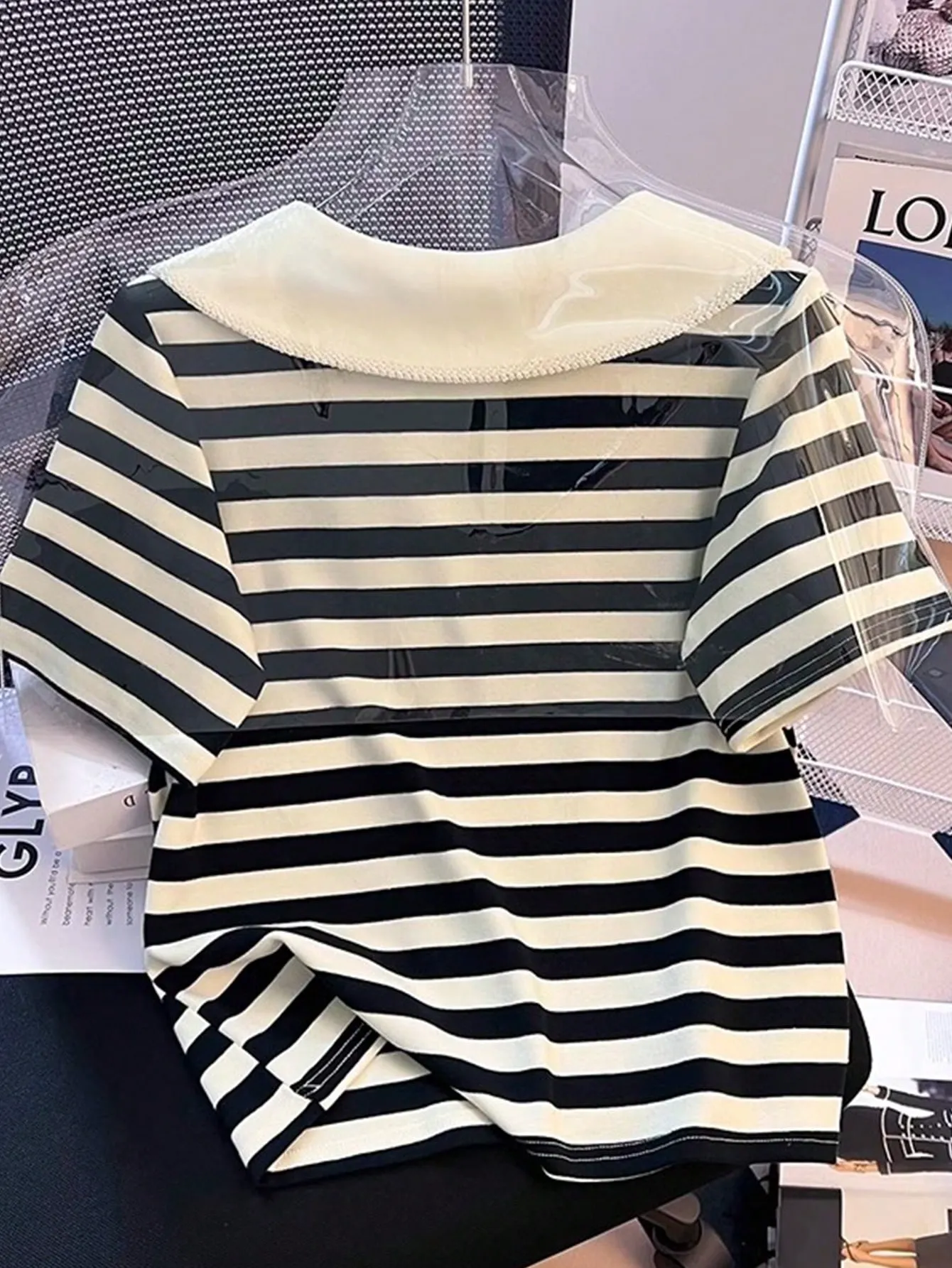 Letter Patched Striped Trim Colorblock Denim Varsity Jacket