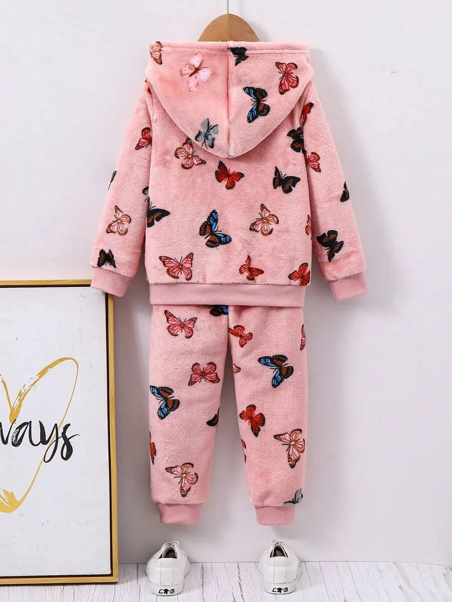 Butterfly Print Fleece Hoodie Sweatshirt And Pants