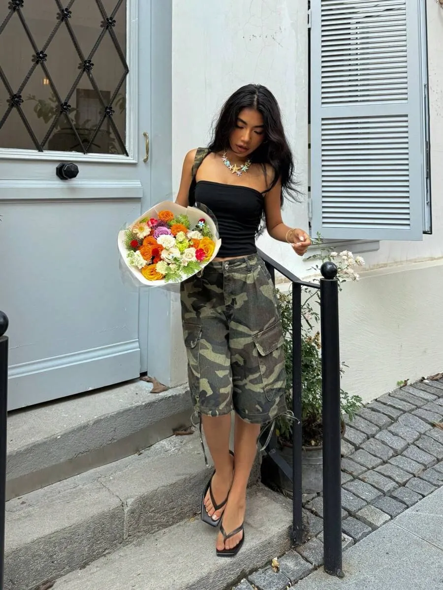 Solid Tank Top & Flap Pocket Side Cargo Pants