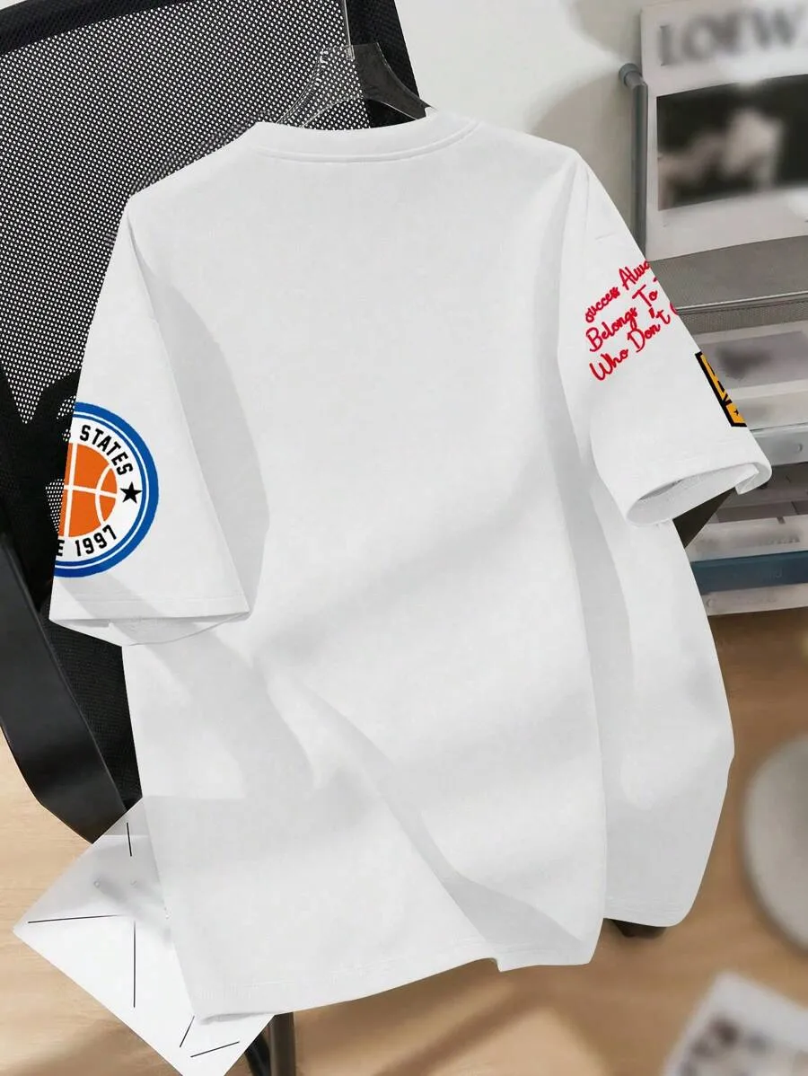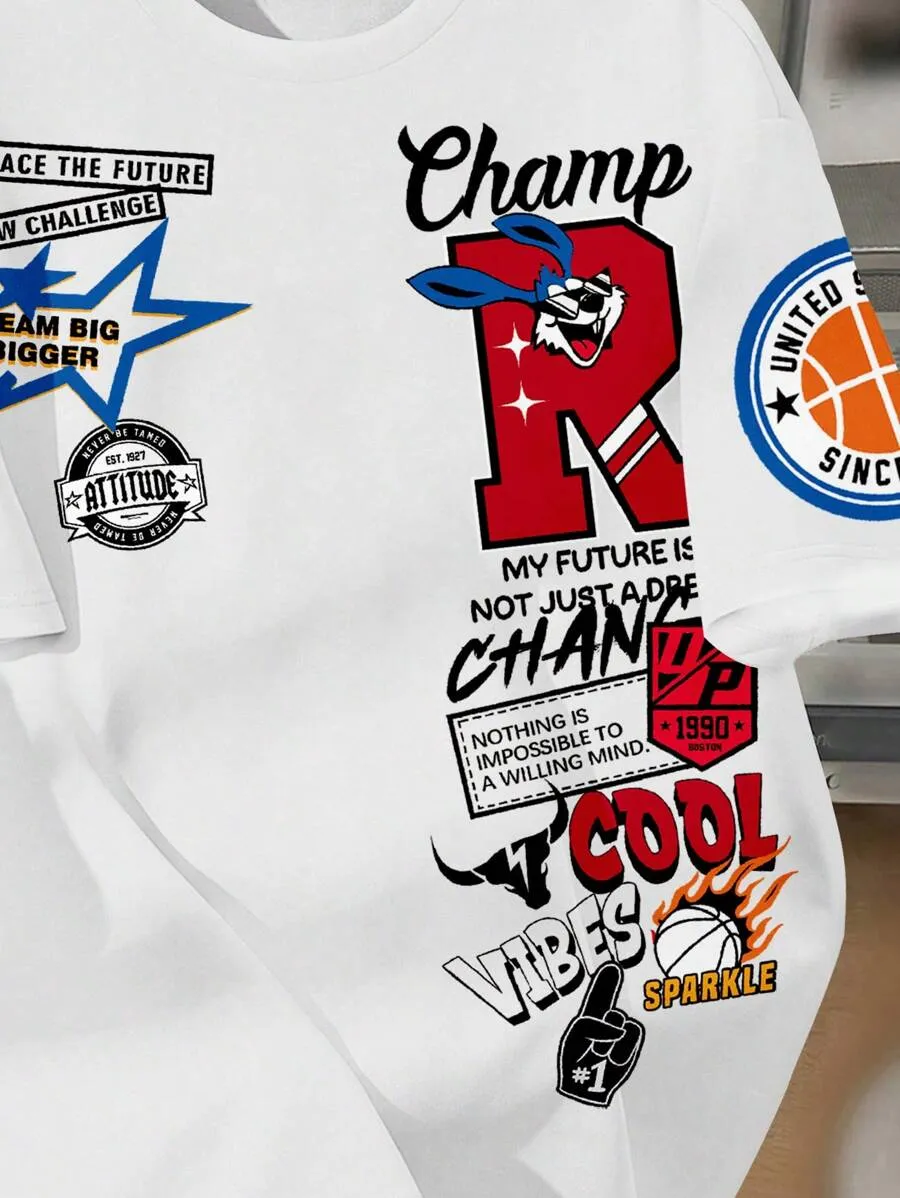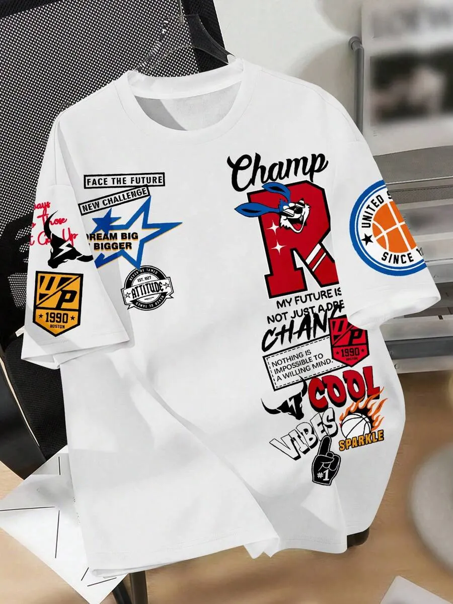 Casual Minimalist Cartoon Letter Print Loose Short Sleeve