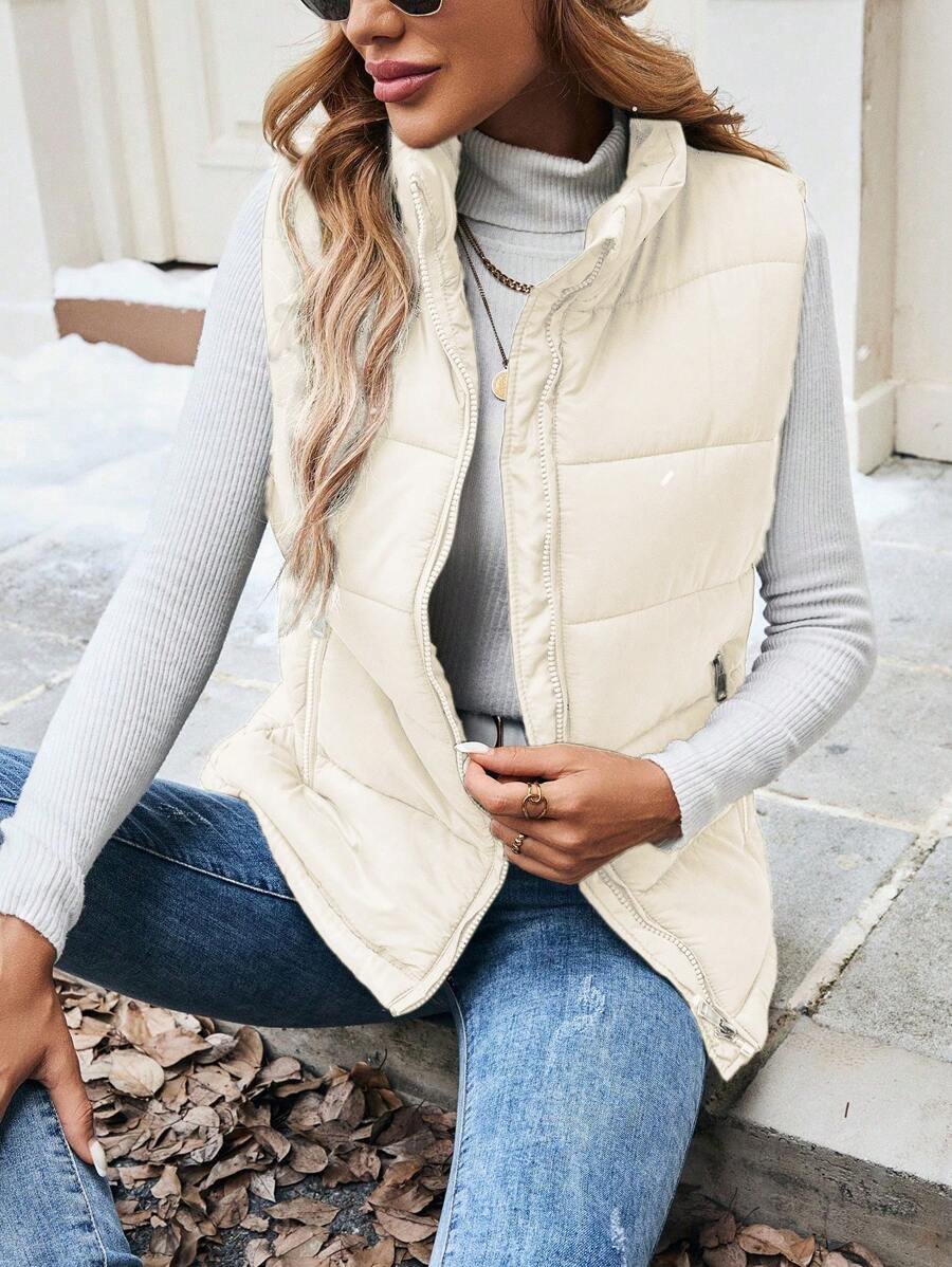 Casual Versatile Solid Color Zipper Front Padded Puffer