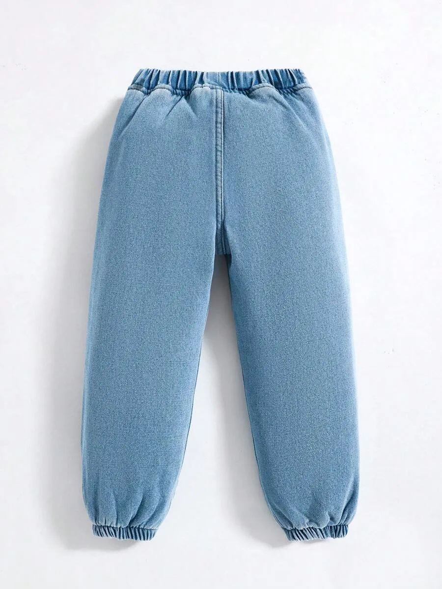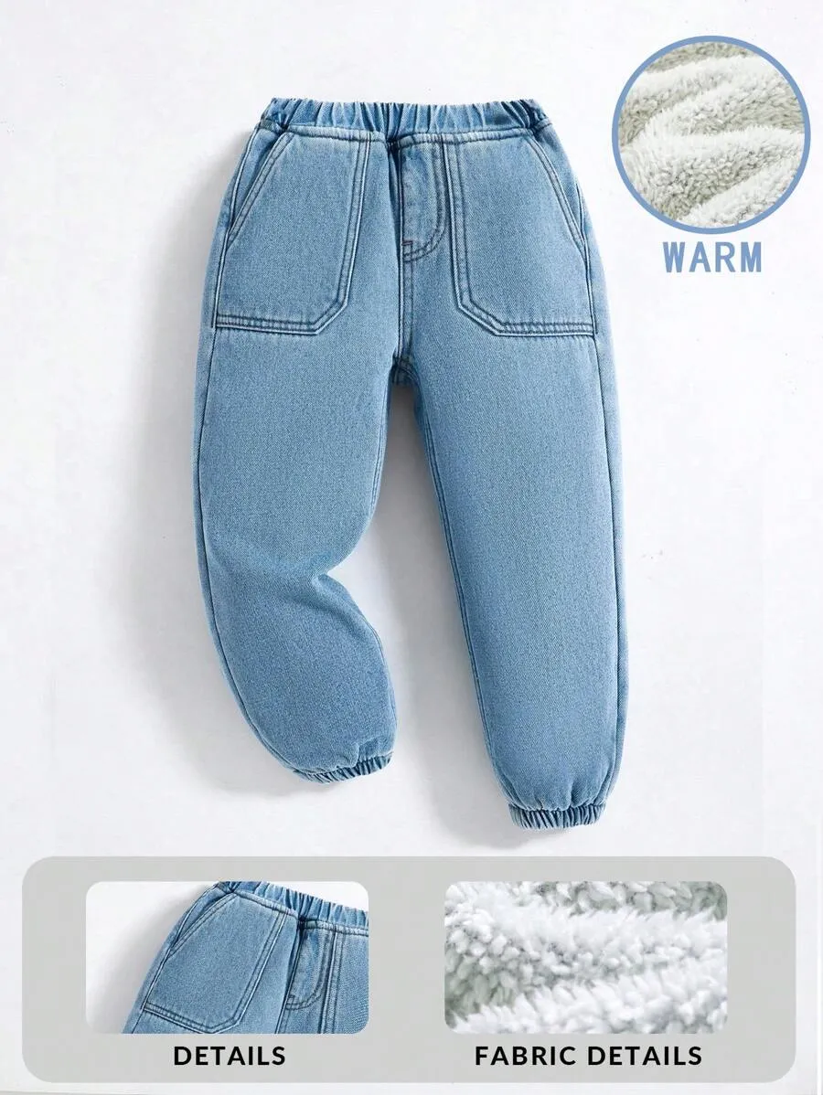 Casual Warm Basic Blue Denim Thermal Lined Jogger Jeans quantity