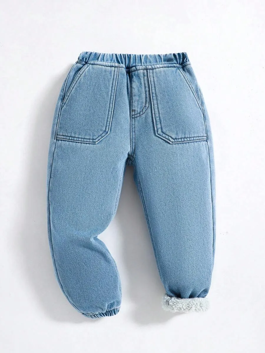 Casual Warm Basic Blue Denim Thermal Lined Jogger Jeans