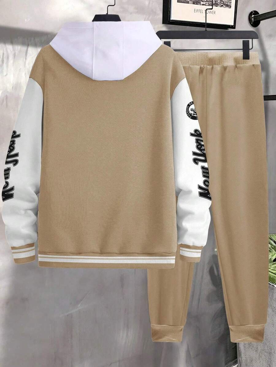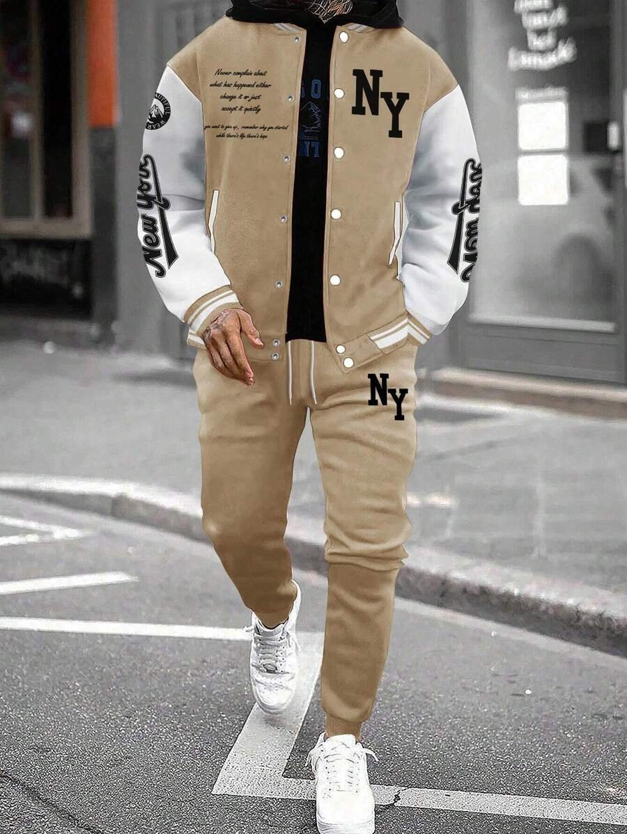 Color Block Striped Baseball Jacket And Sports Pants