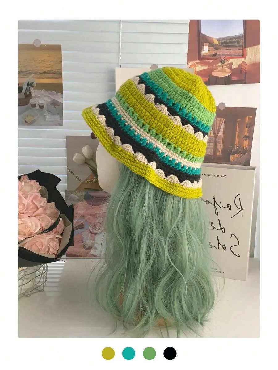 Striped Short Sleeve Casual Hollow Out Collar Knitted Polo Shirt