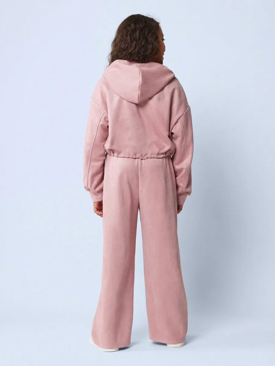 Elastic Hem Hoodie And Wide Leg Sweatpants