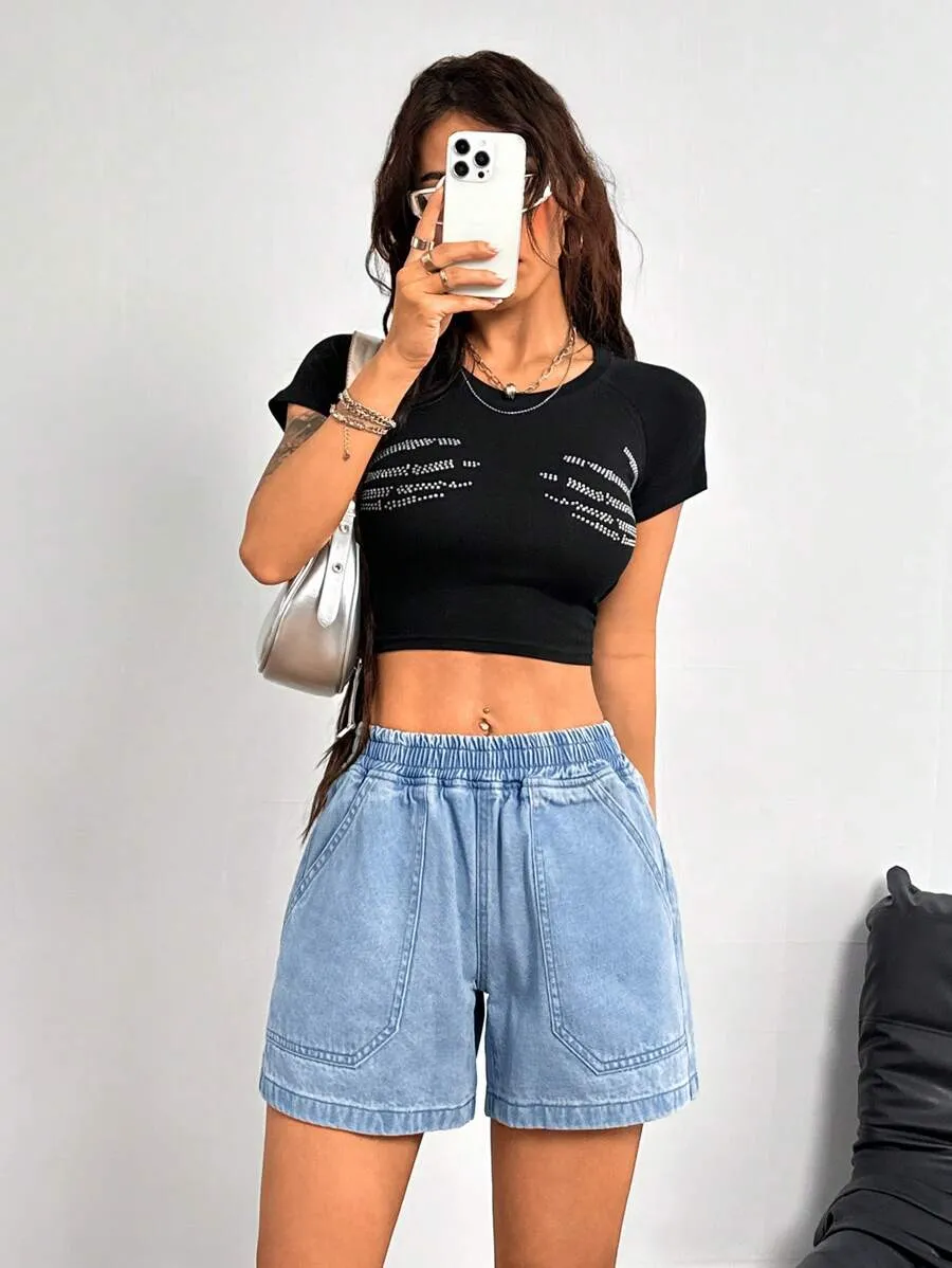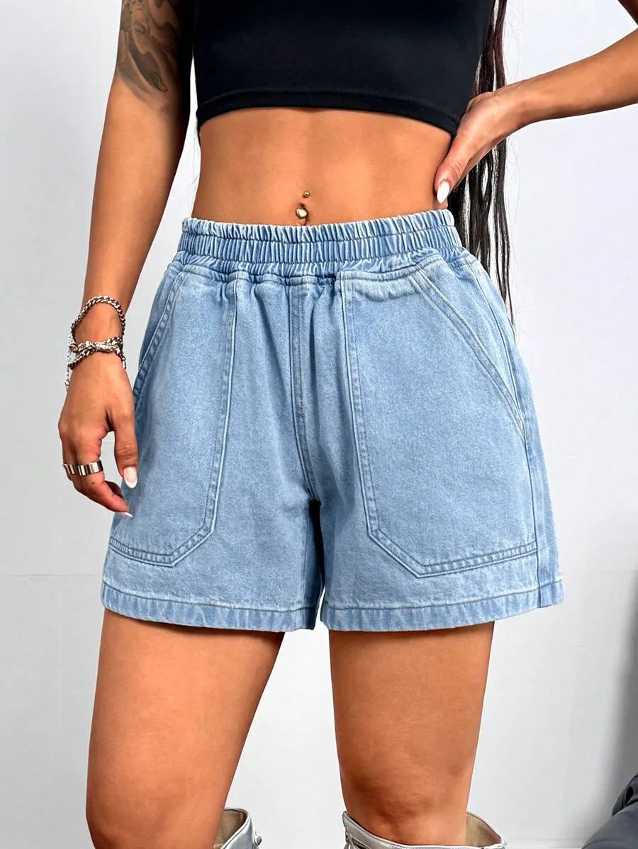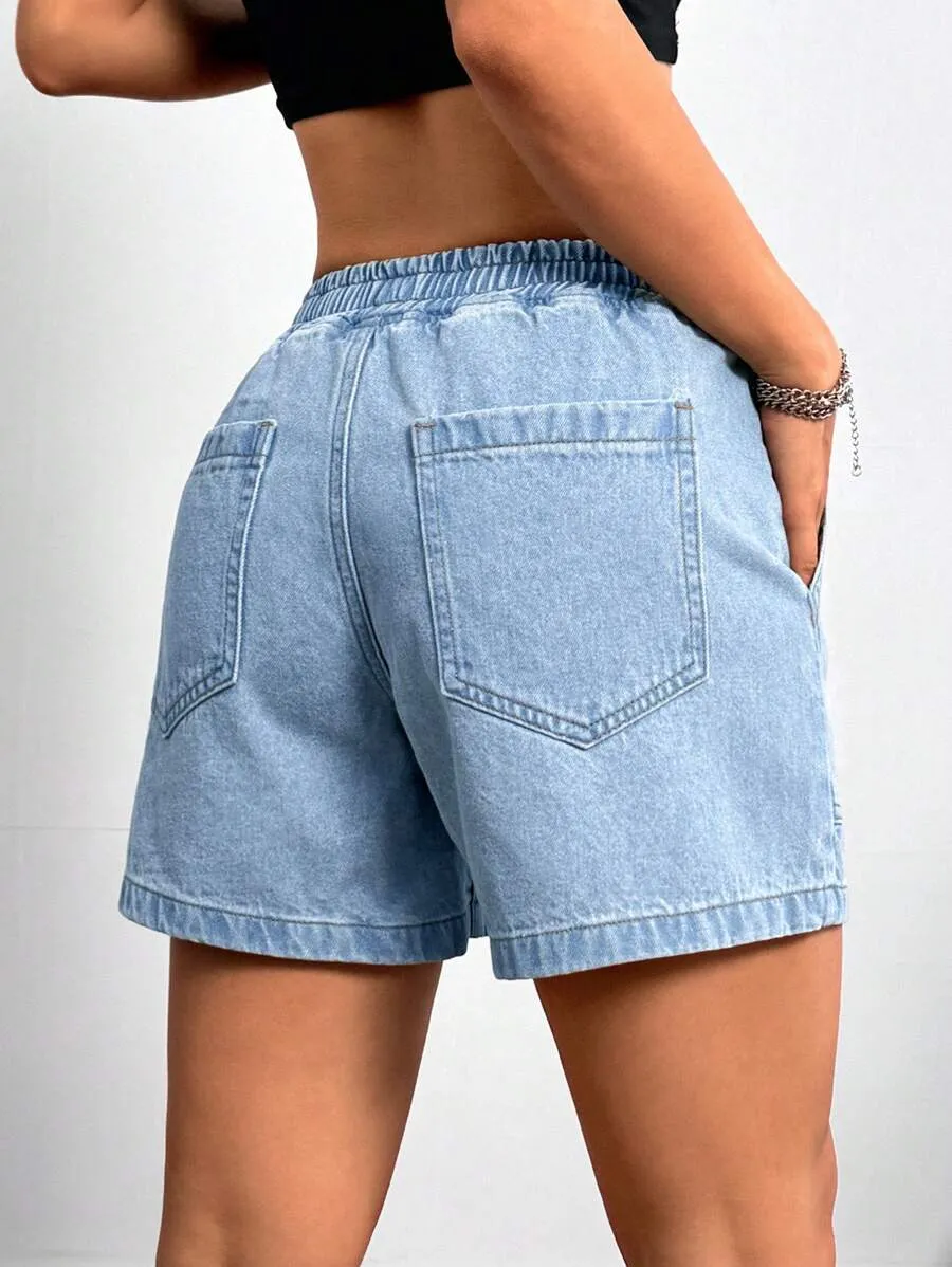 Elastic Waist Fitted Denim Shorts