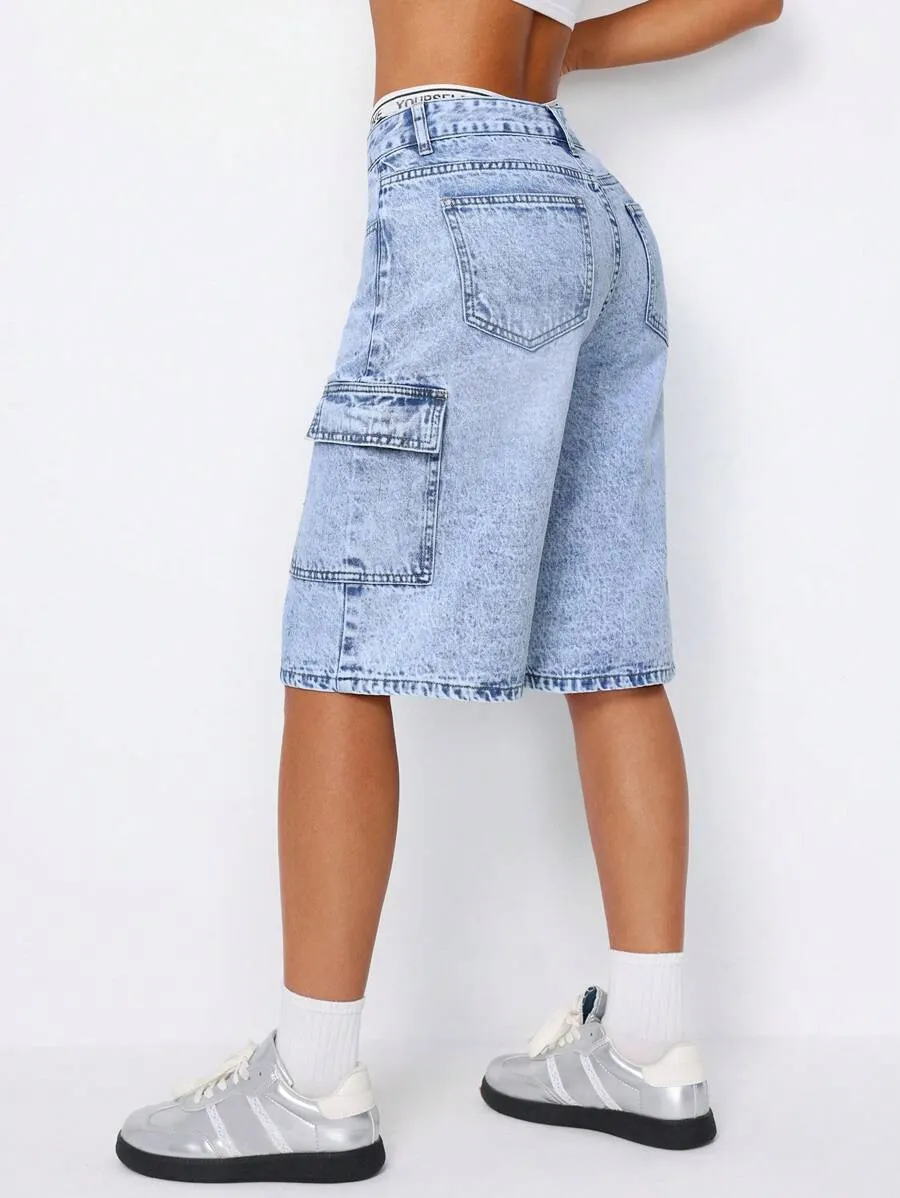 Fashionable Denim Shorts With Pocket Design