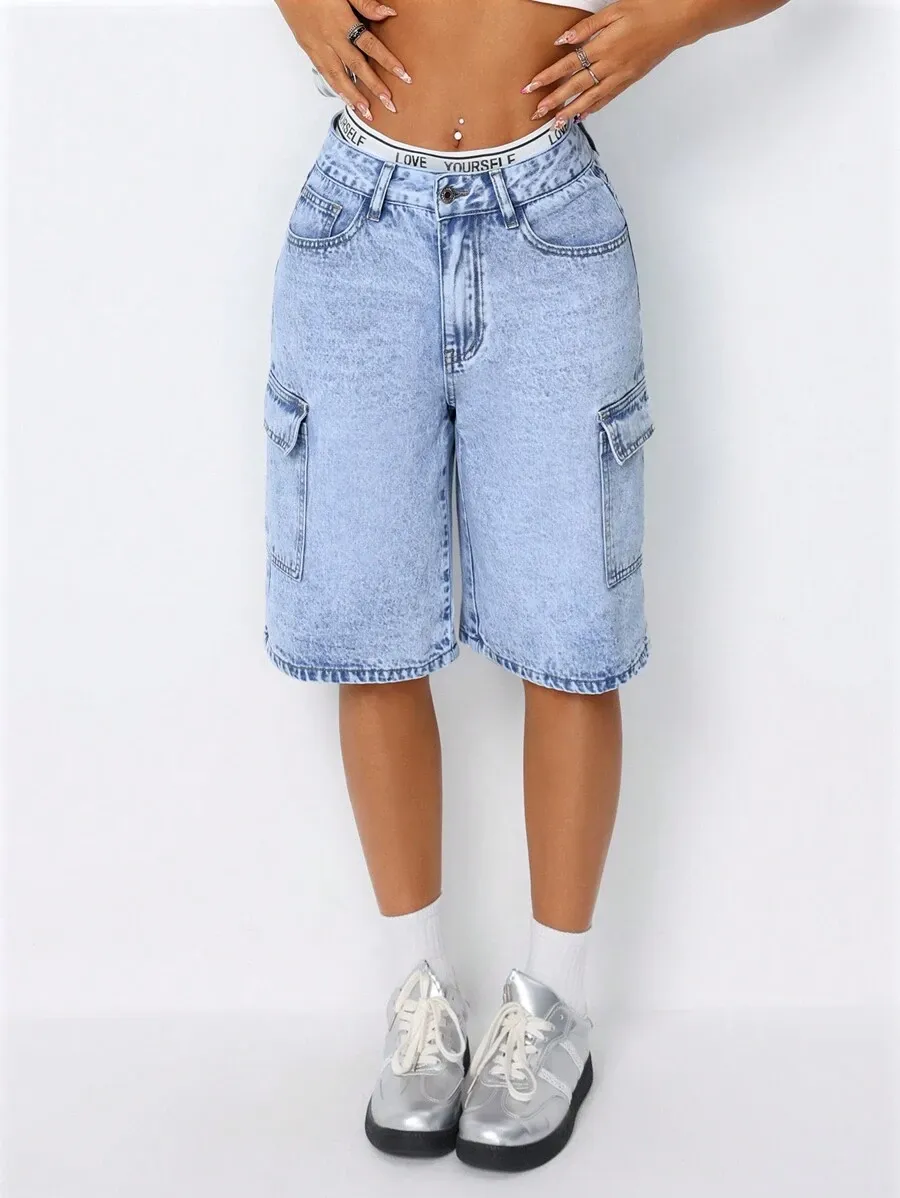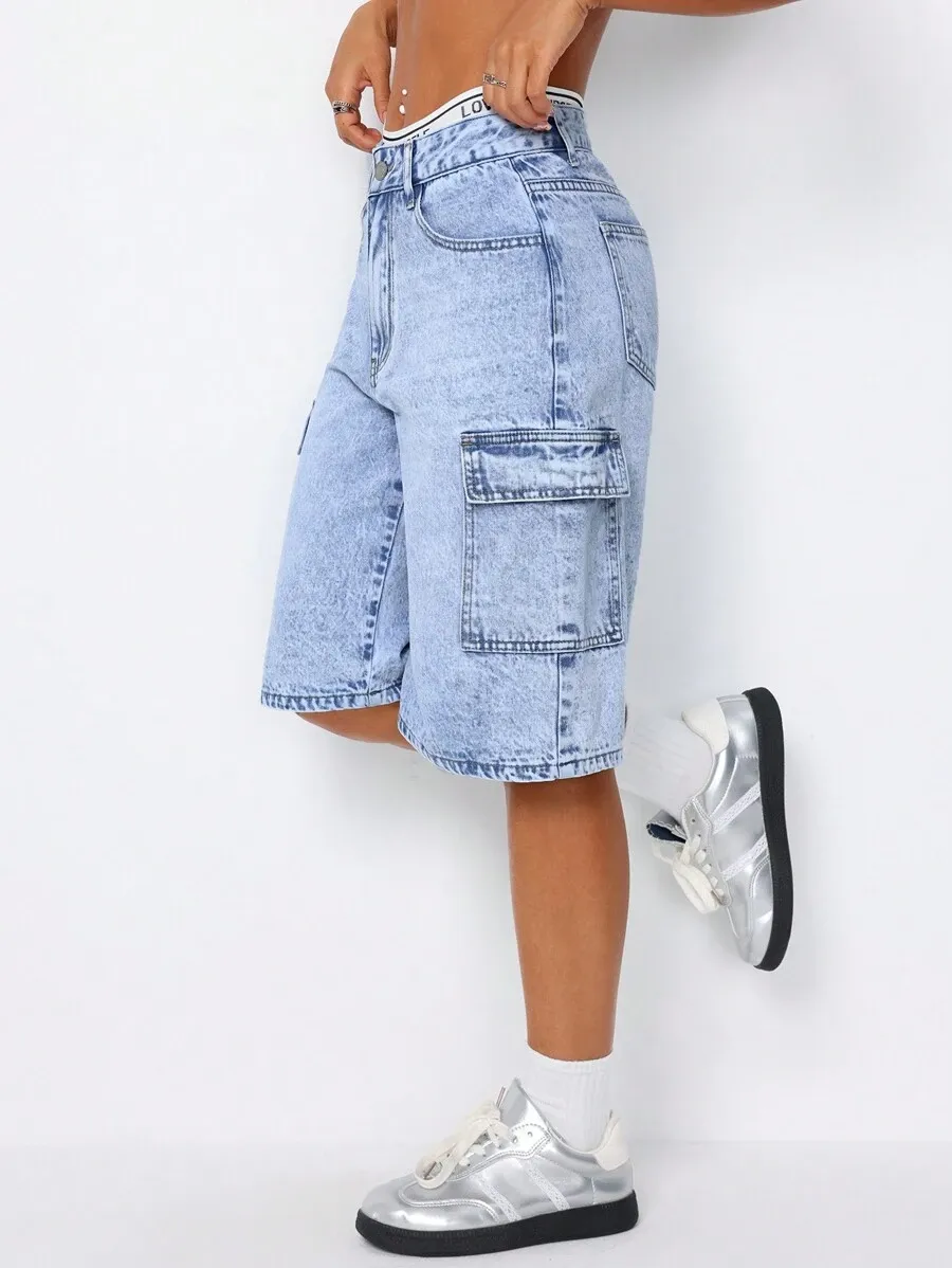 Fashionable Denim Shorts With Pocket Design quantity