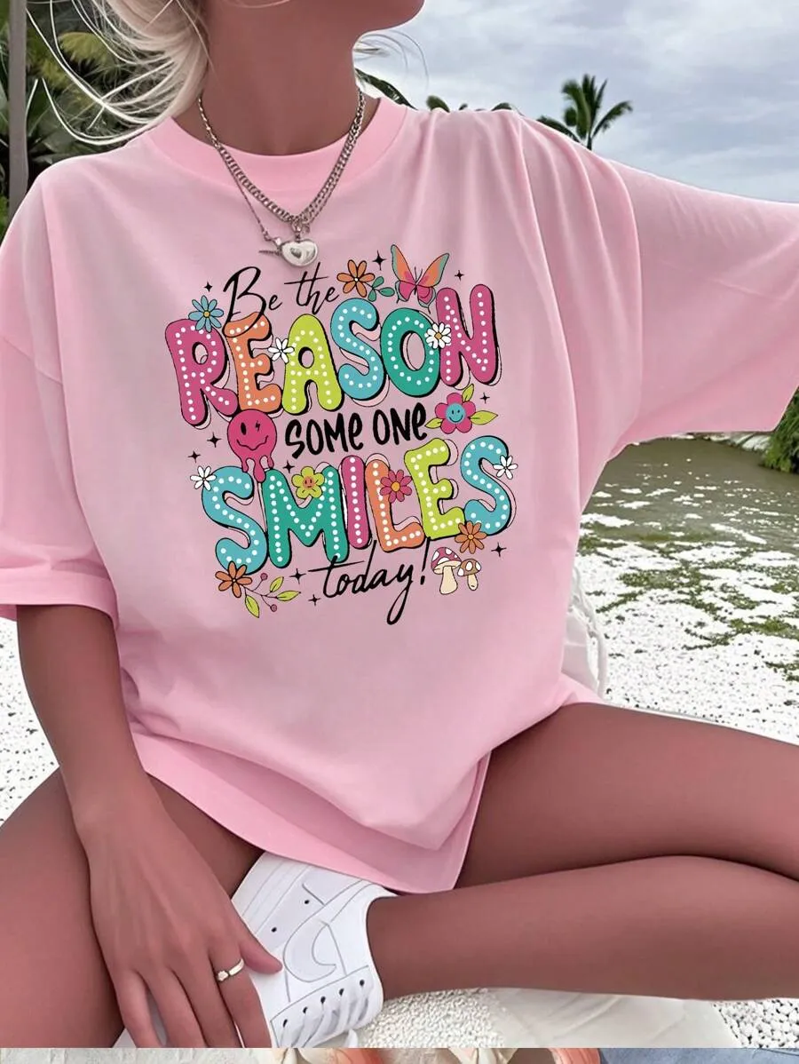 Girls & Teenager Students Casual Pink Printed Crew Neck Short Sleeve T Shirt quantity