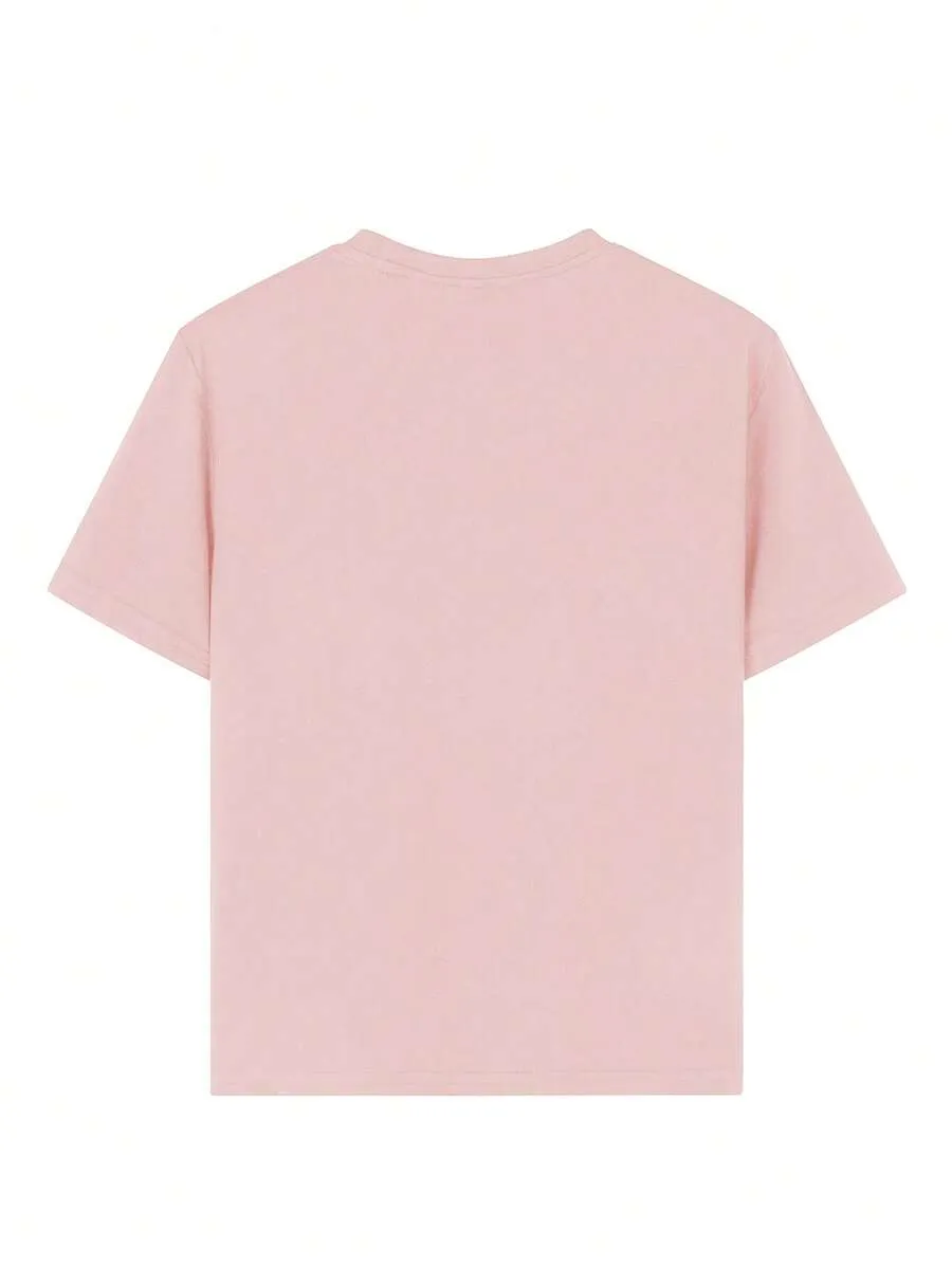 Girls & Teenager Students Casual Pink Printed Crew Neck Short Sleeve T Shirt