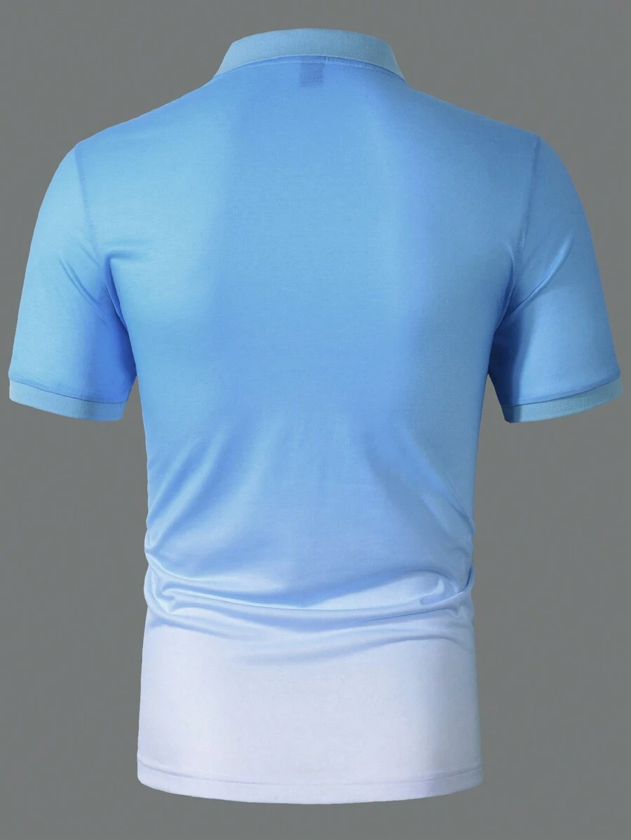 Gradient Color Seagull Printed Short Sleeve Polo Shirt