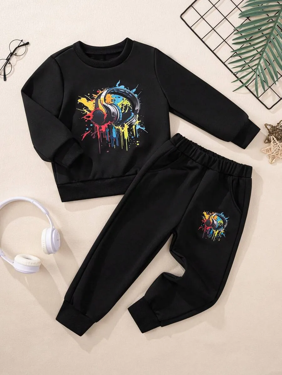 Headphone Print Hoodie Sweatshirt And Sweatpants Set