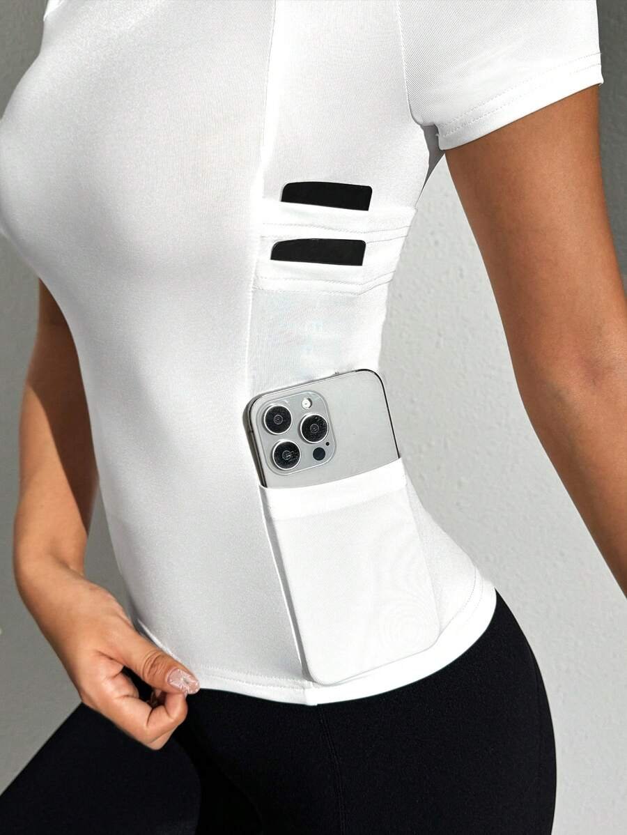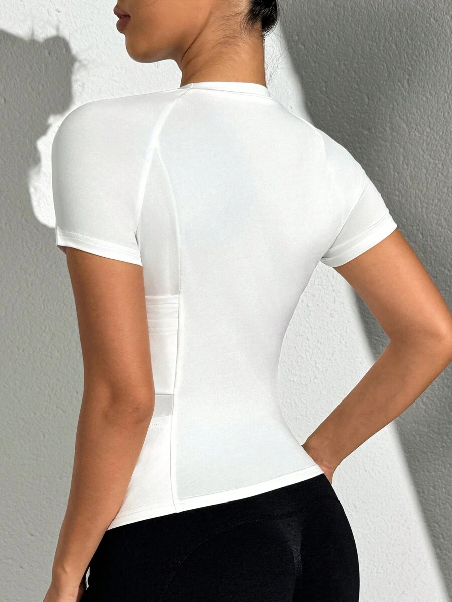 Letter Graphic Contrast Mesh Mock Neck Crop Sports quantity