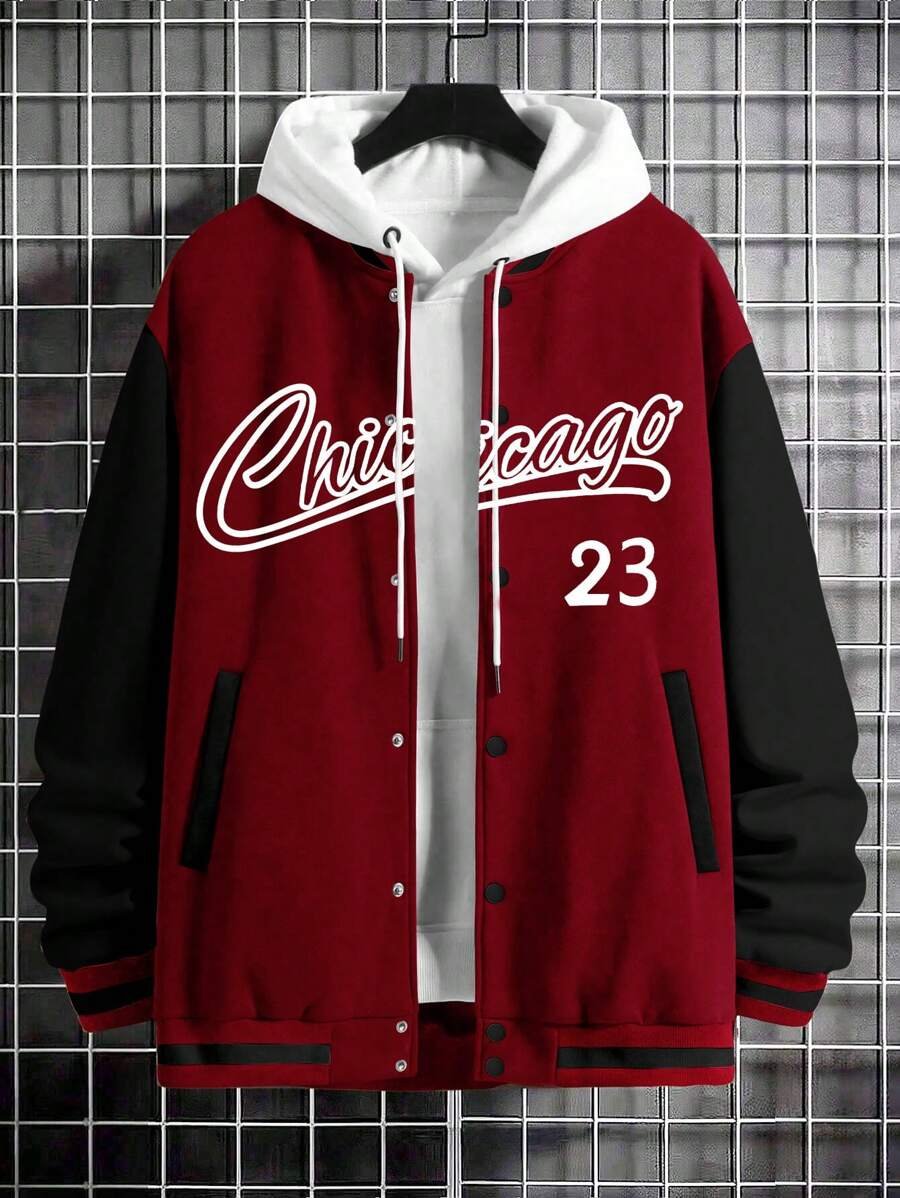 Letter Print Color block Baseball Jacket quantity
