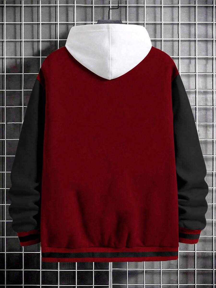 Letter Print Color block Baseball Jacket