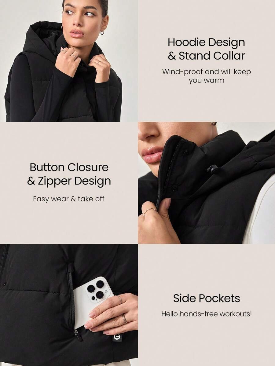 Lightweight Stand Collar Padded Sleeveless Puffer Hoodie