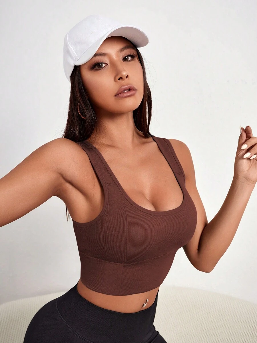 Minimalist Solid Color Removable Cup Sports Bra quantity