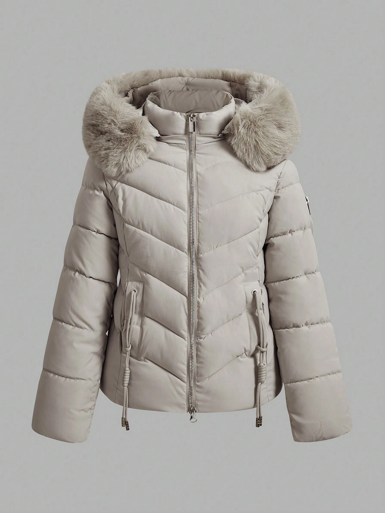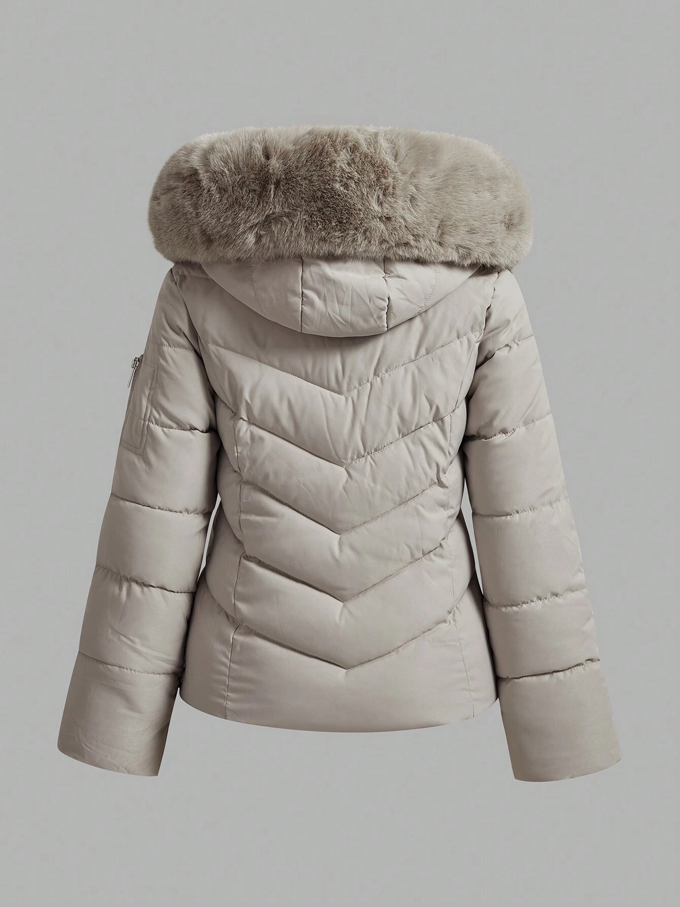 Padded Coat With Fur Collar Zippers & Long Sleeves quantity