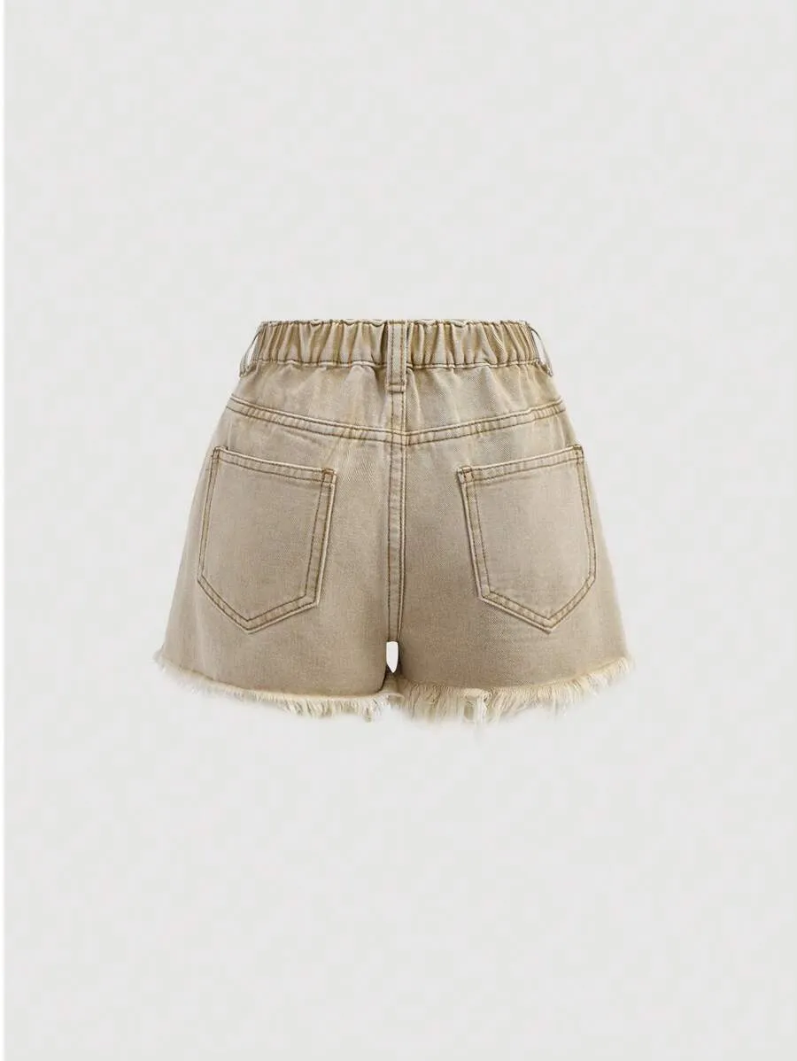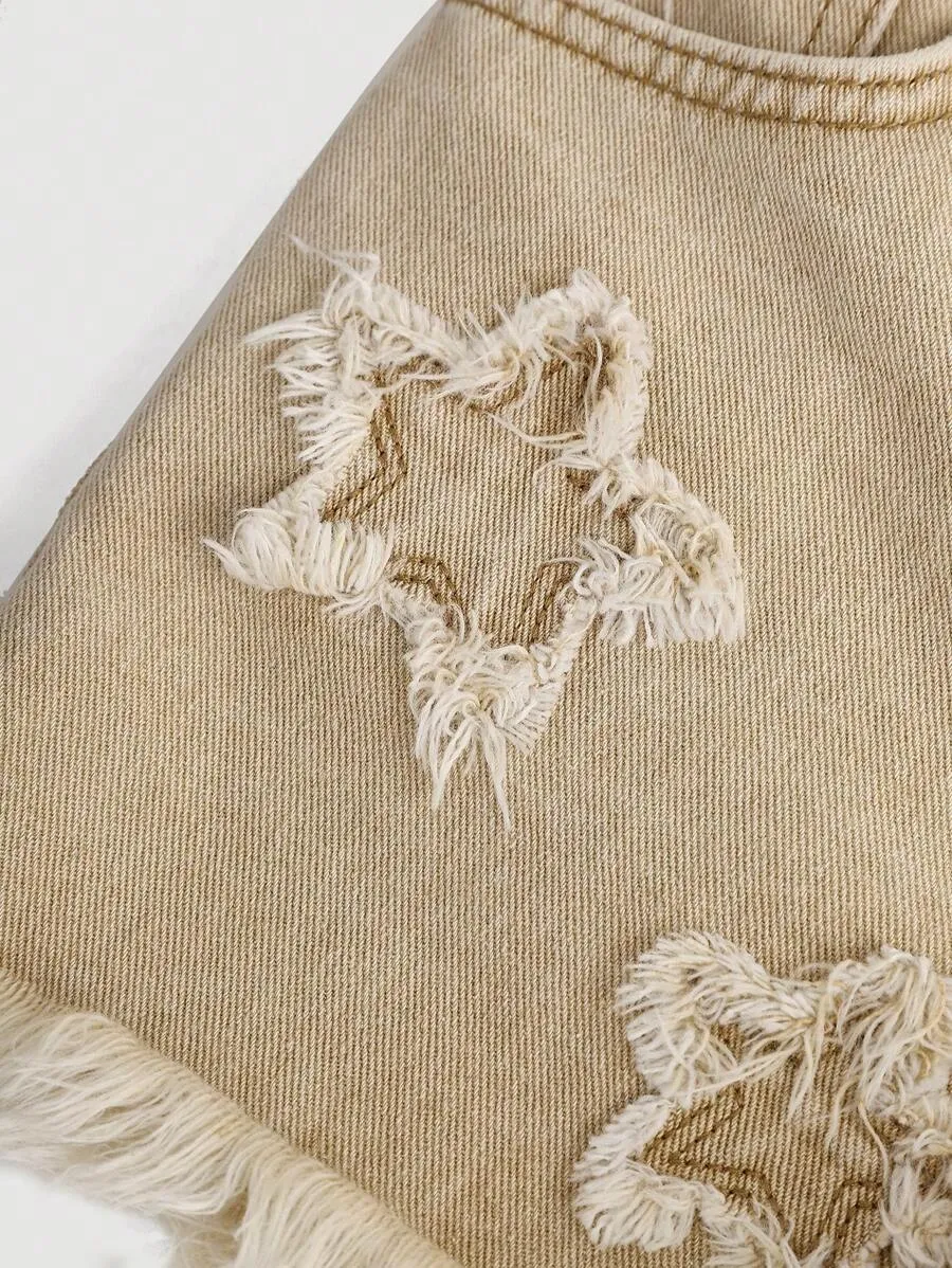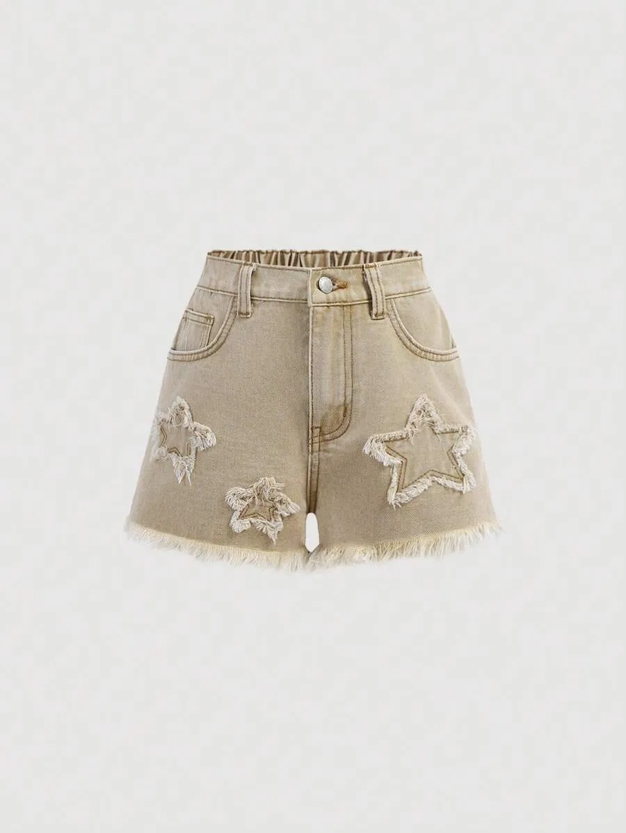 Patched Faded Frayed Denim Jeans Shorts for Girls Summer