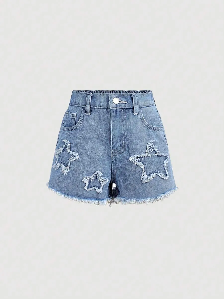 Patched Faded Frayed Denim Jeans Shorts quantity