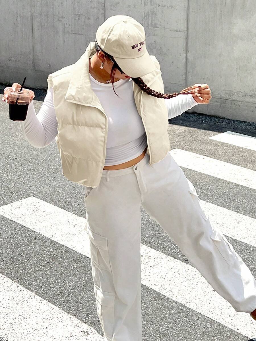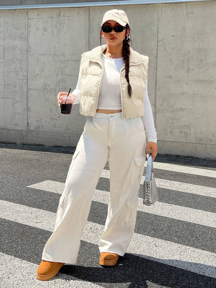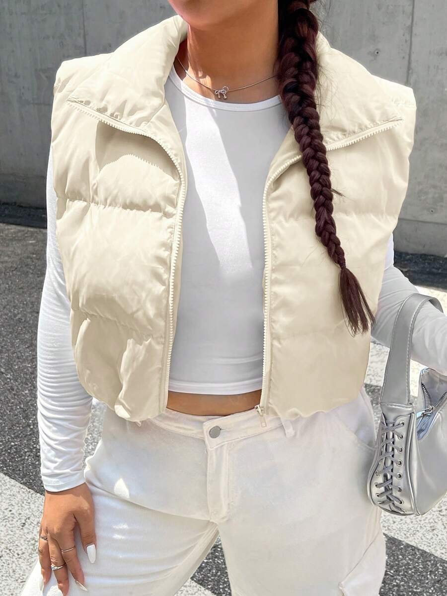Plus Size Solid Color Front Zip Short Padded Vest quantity