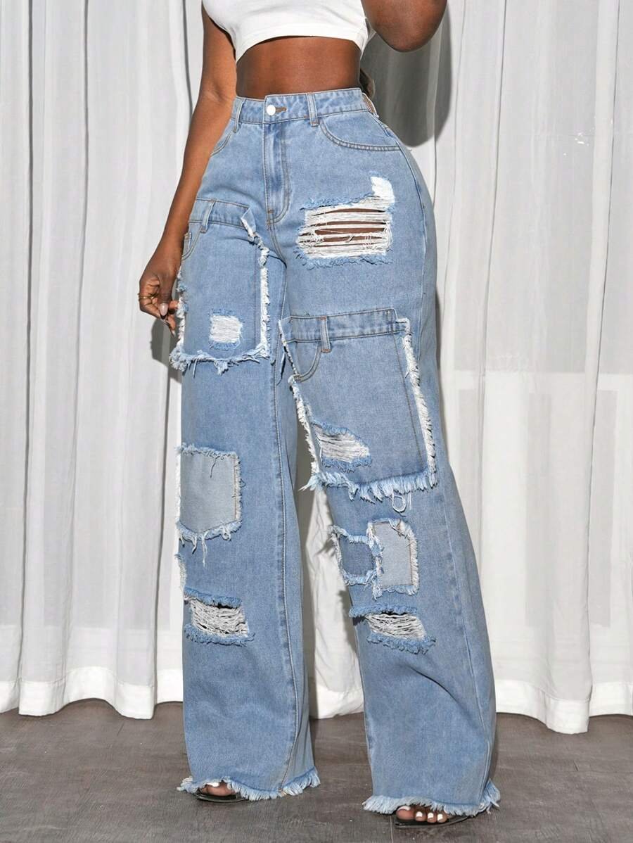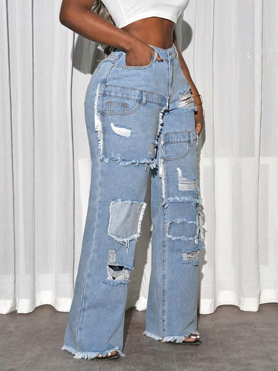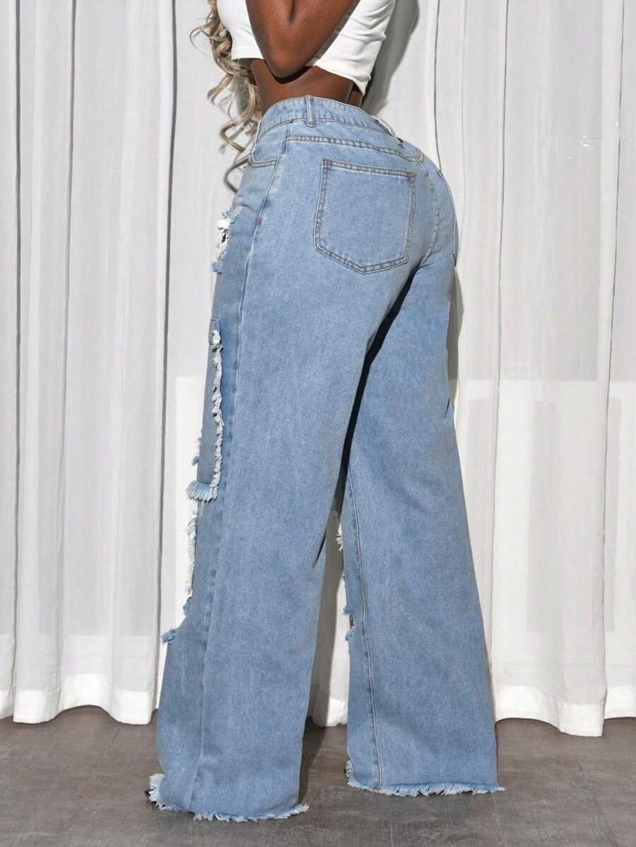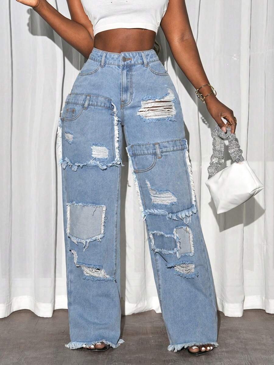 Ripped Pocket Simple Casual Denim Jeans quantity