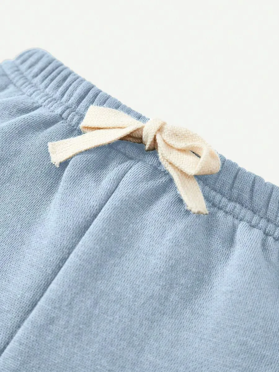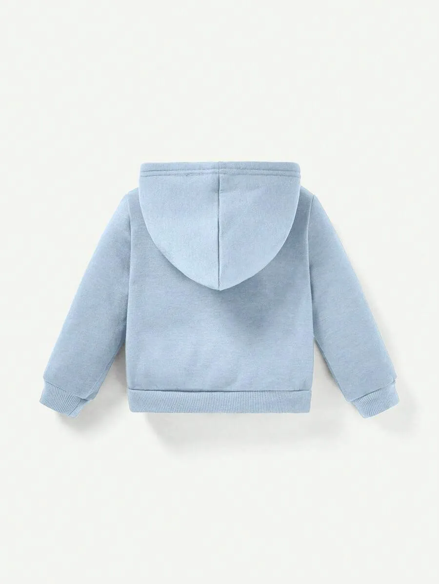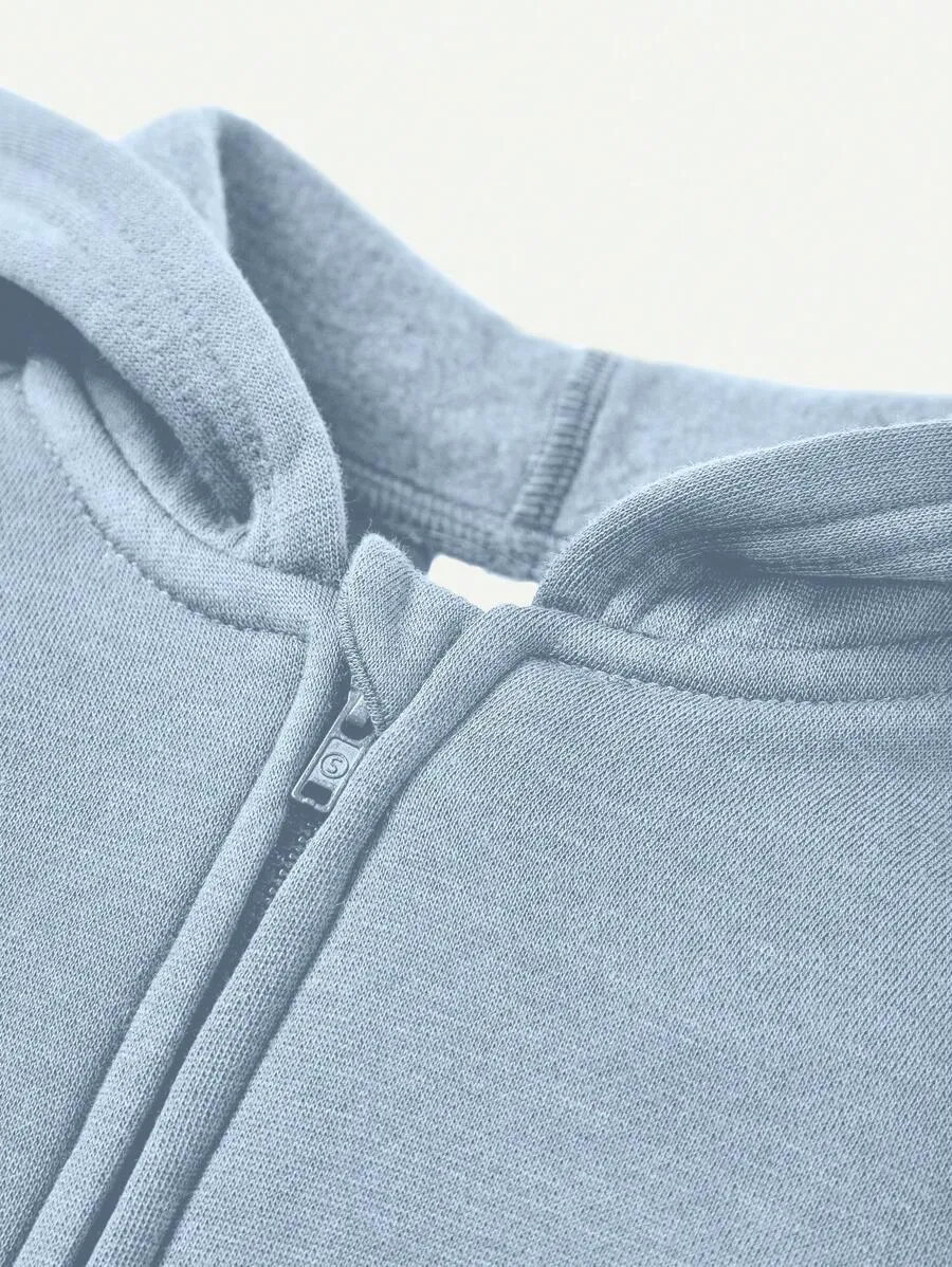 Solid Color Blue Zip Up Hoodies Sweatshirt And Drawstring Pants