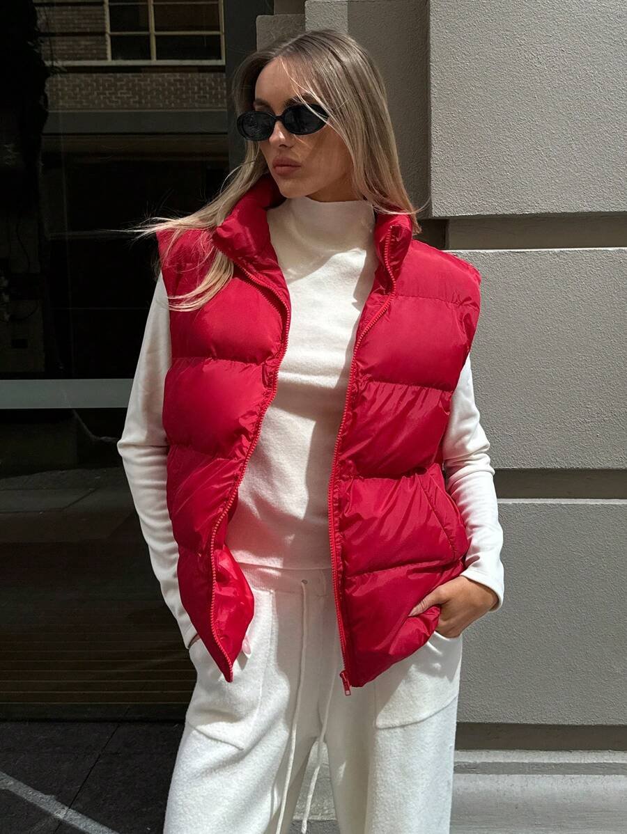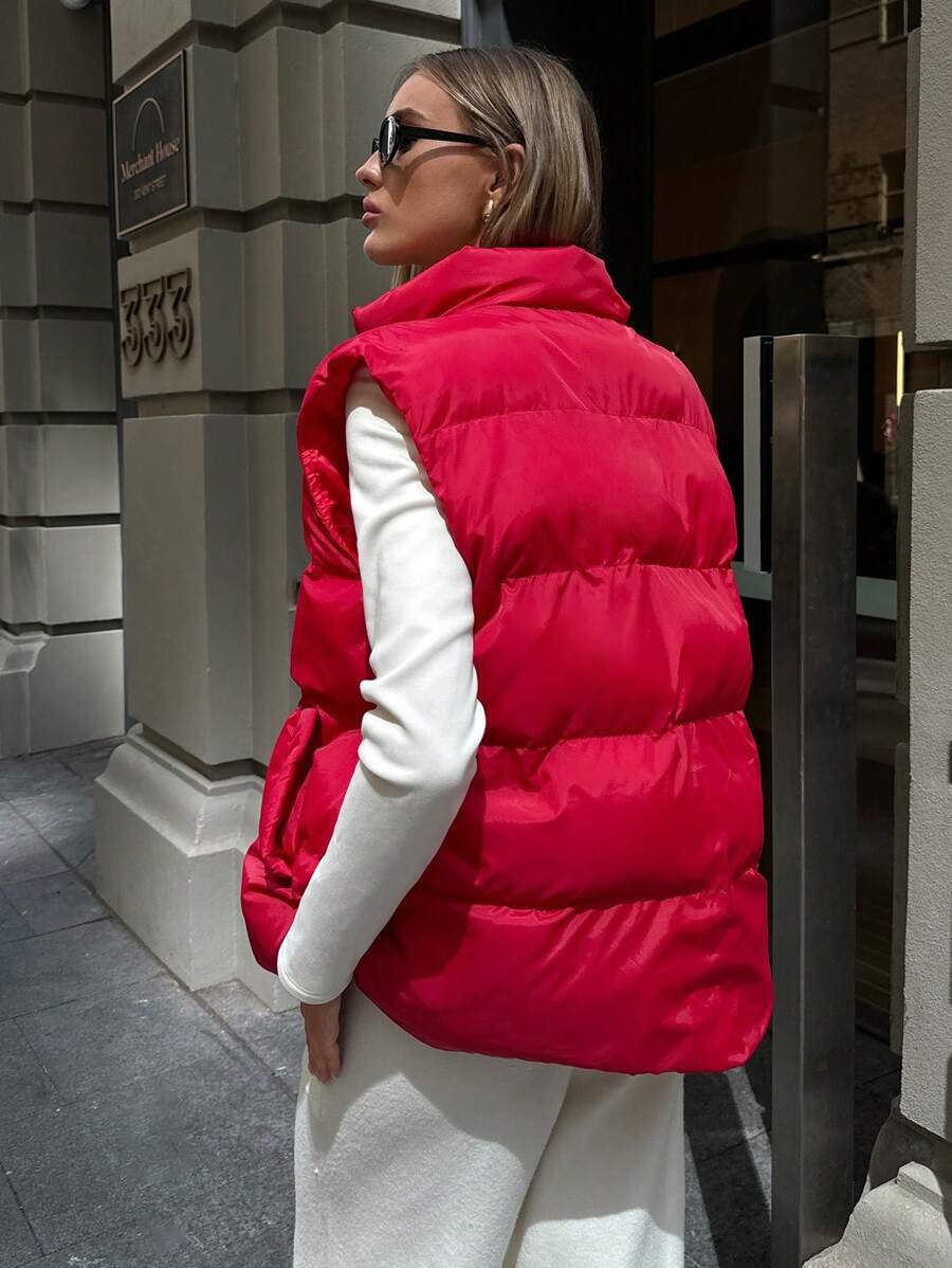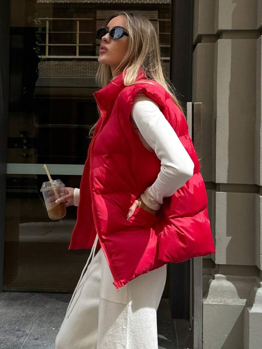 Solid Color Front Zipper Sleeveless Casual Vest