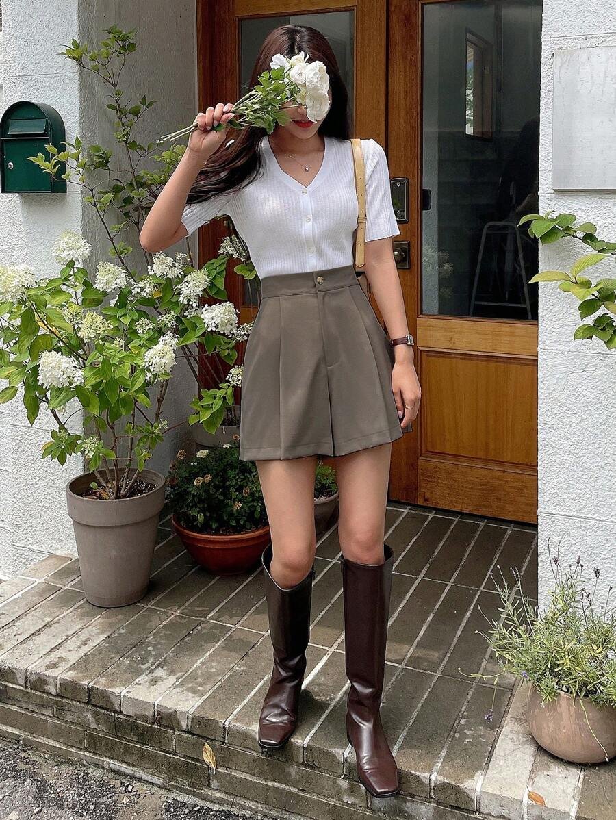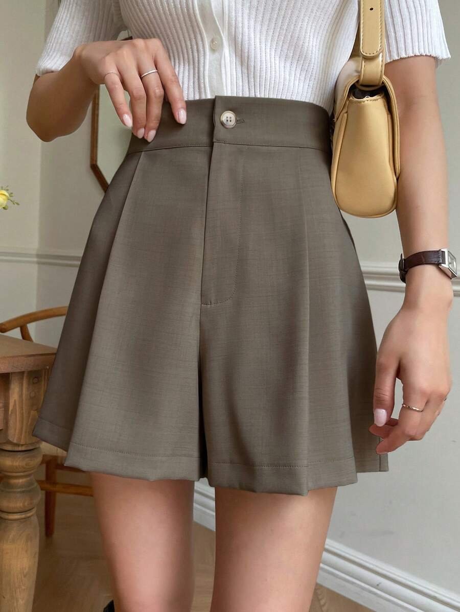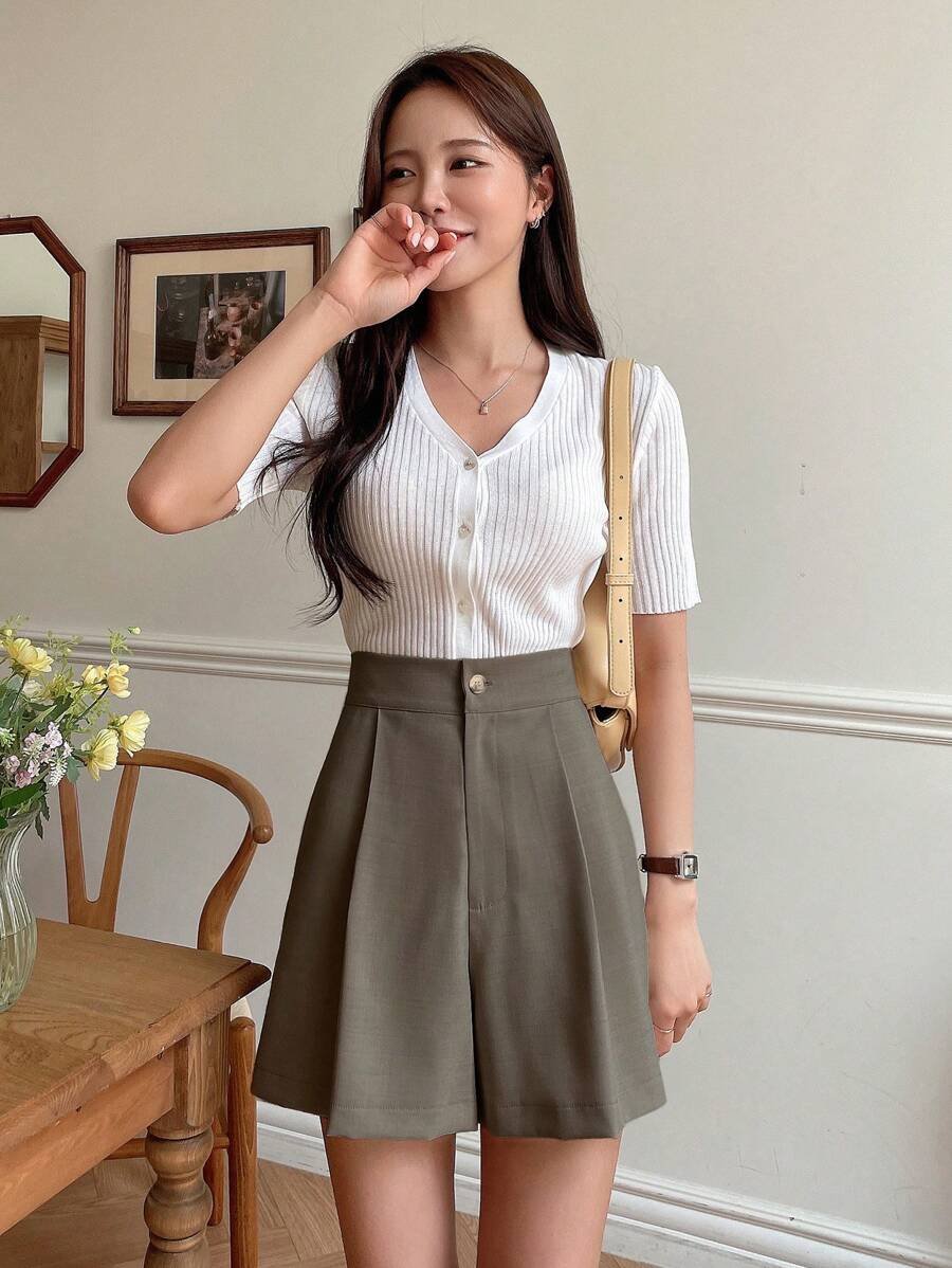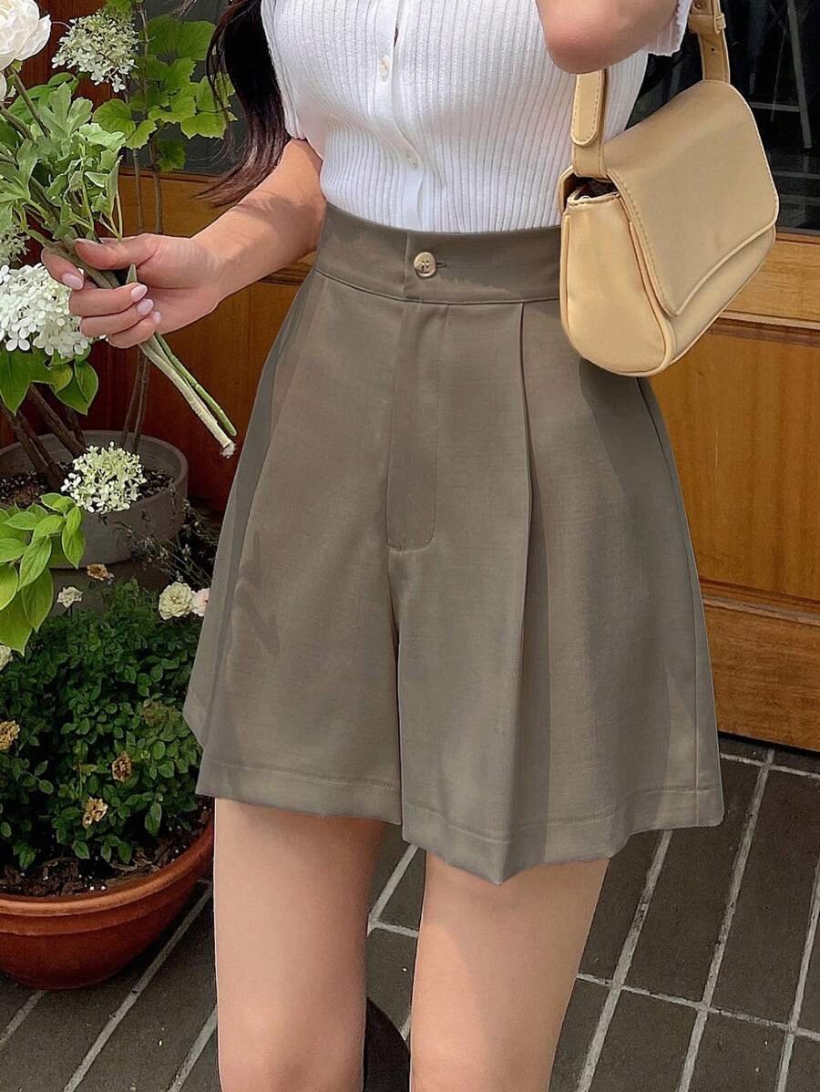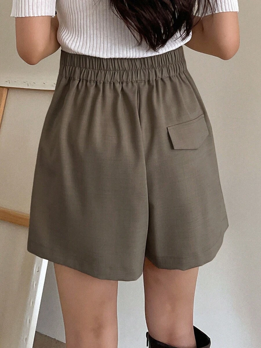Khaki Denim Elastic Drawstring Waist Flap Pocket