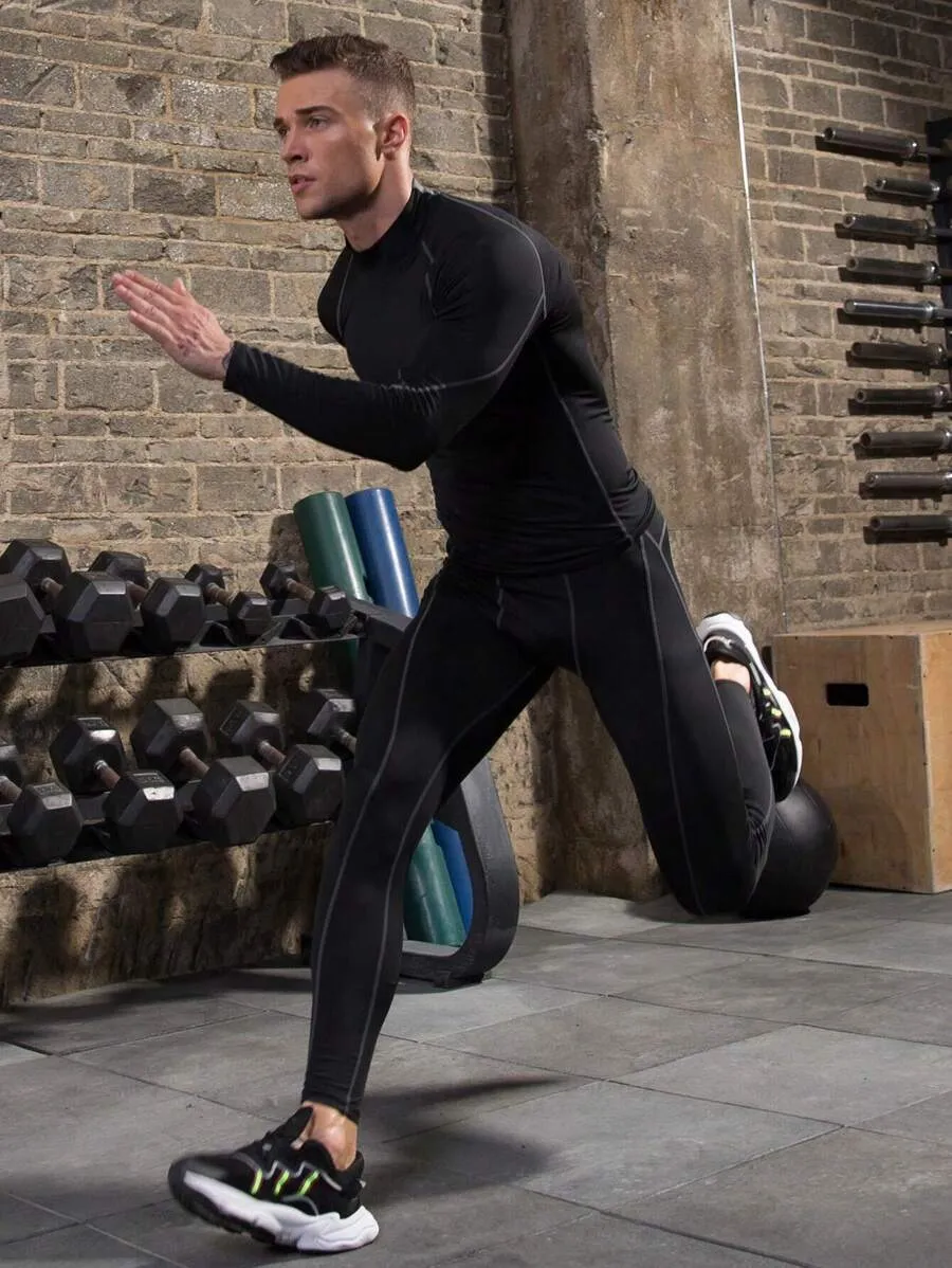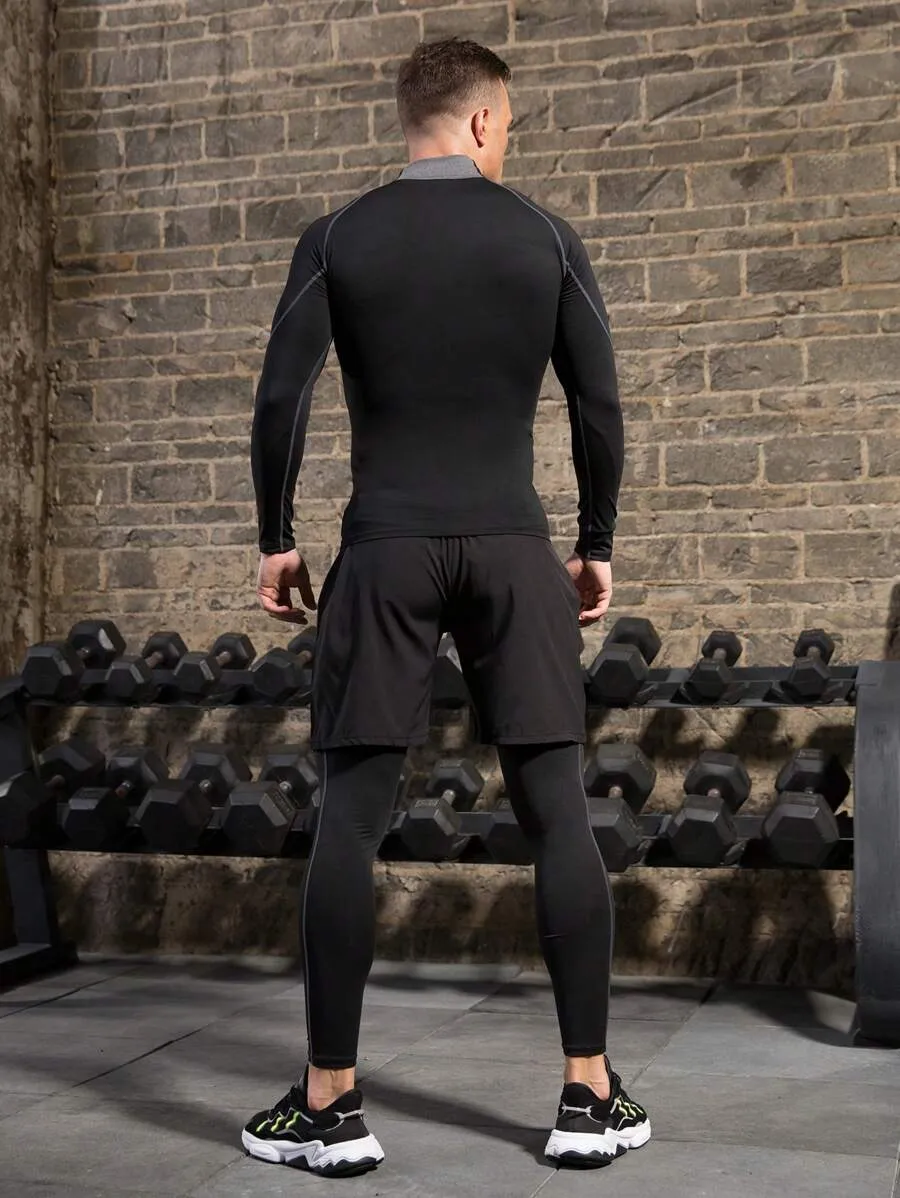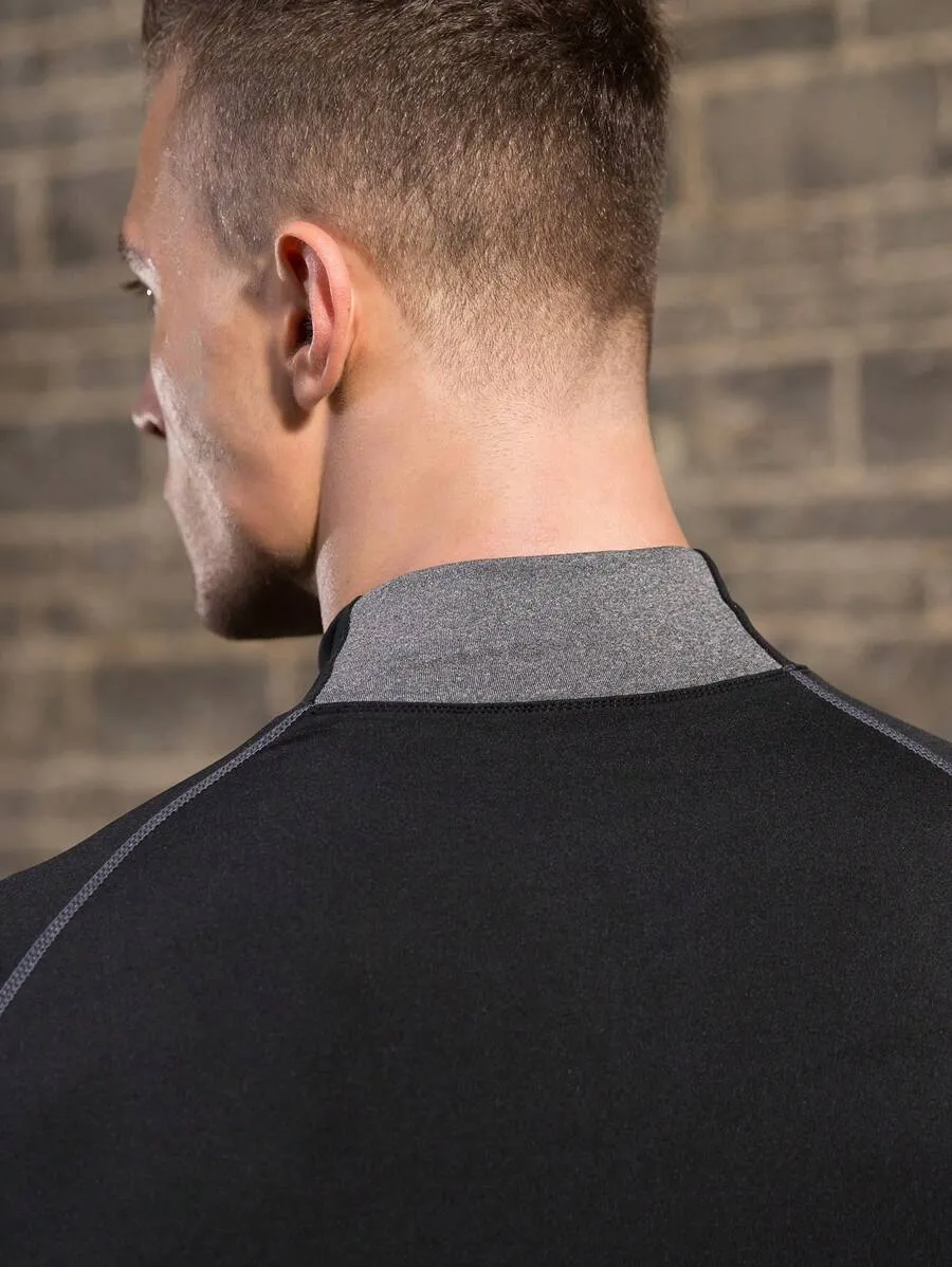 Solid Color Stand Collar Raglan Sleeve Casual Fitness Long Sleeve T Shirt quantity