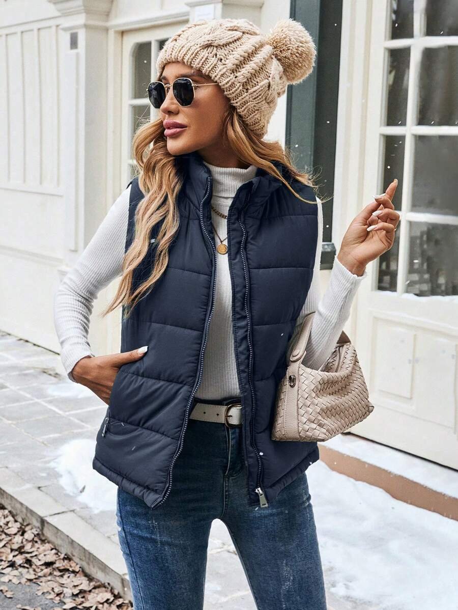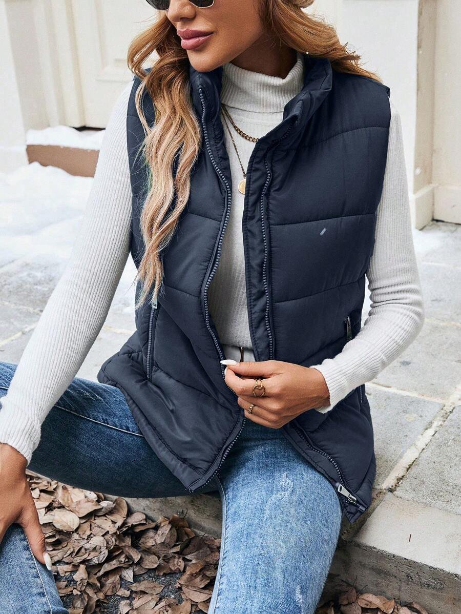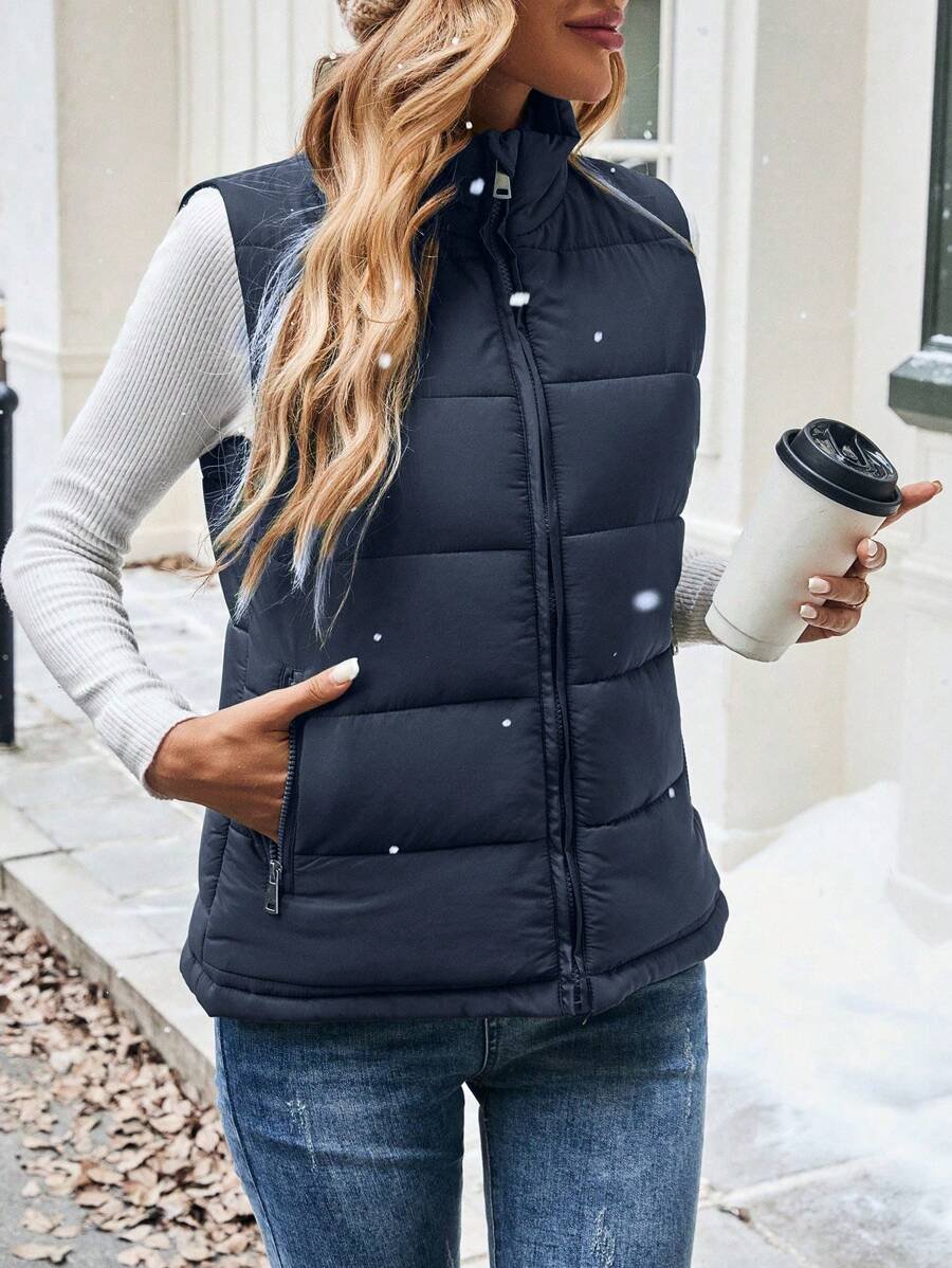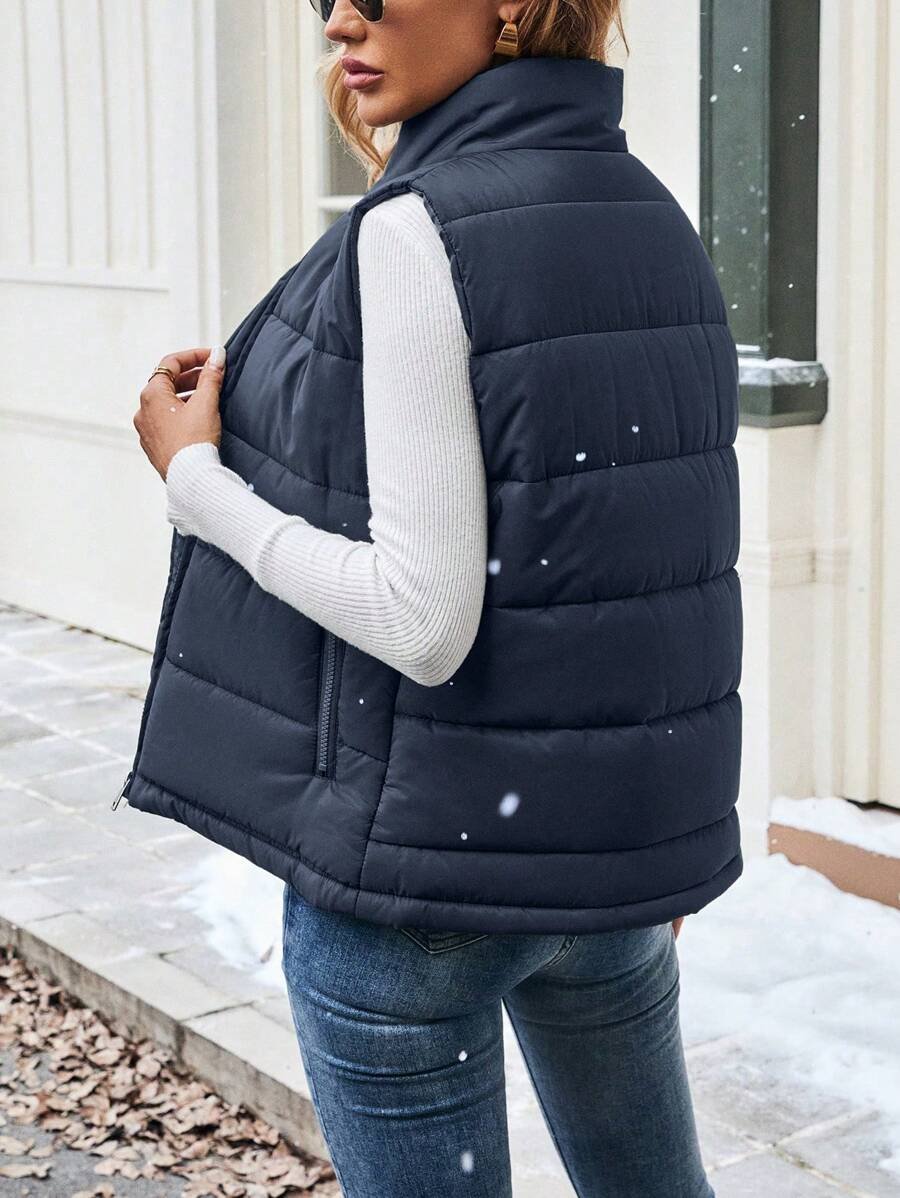 Solid Color Zip Front Casual Padded Puffer Vest quantity