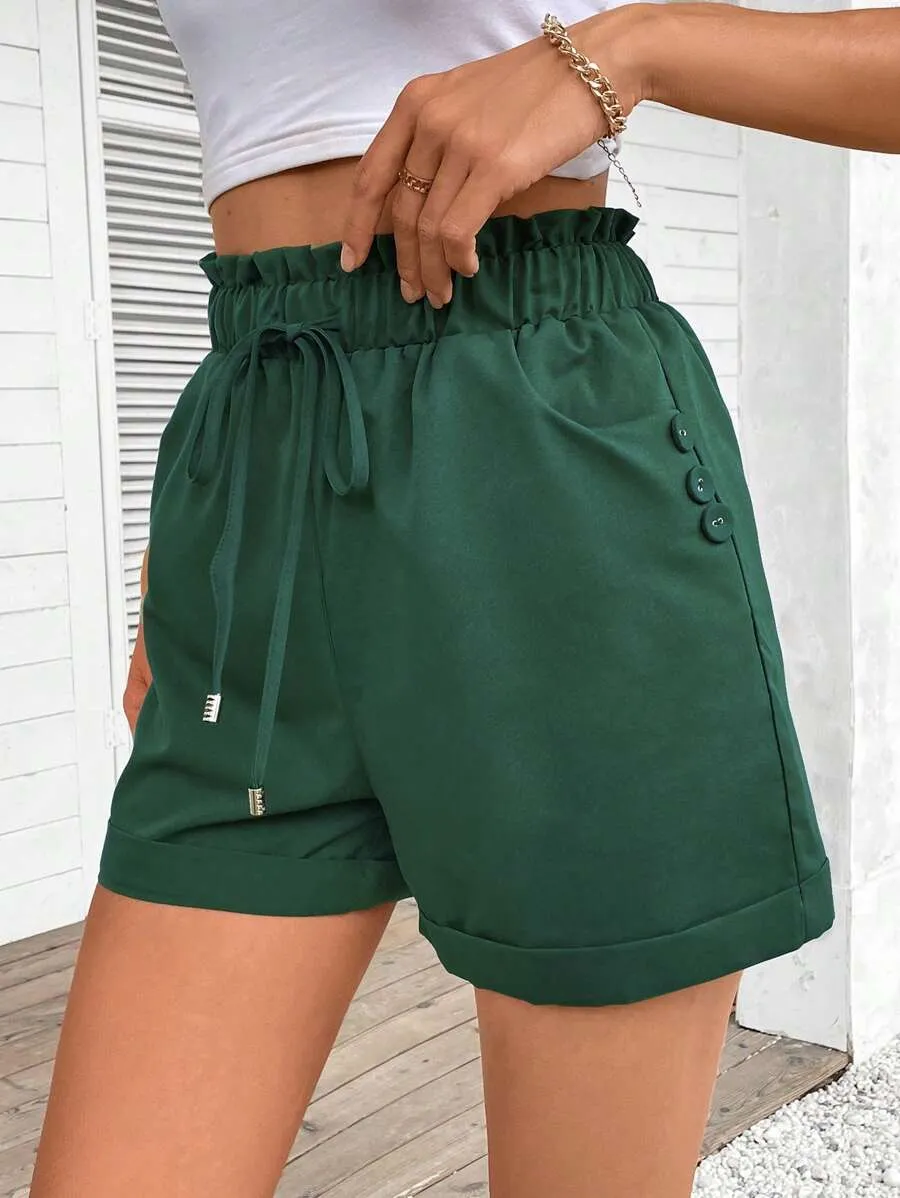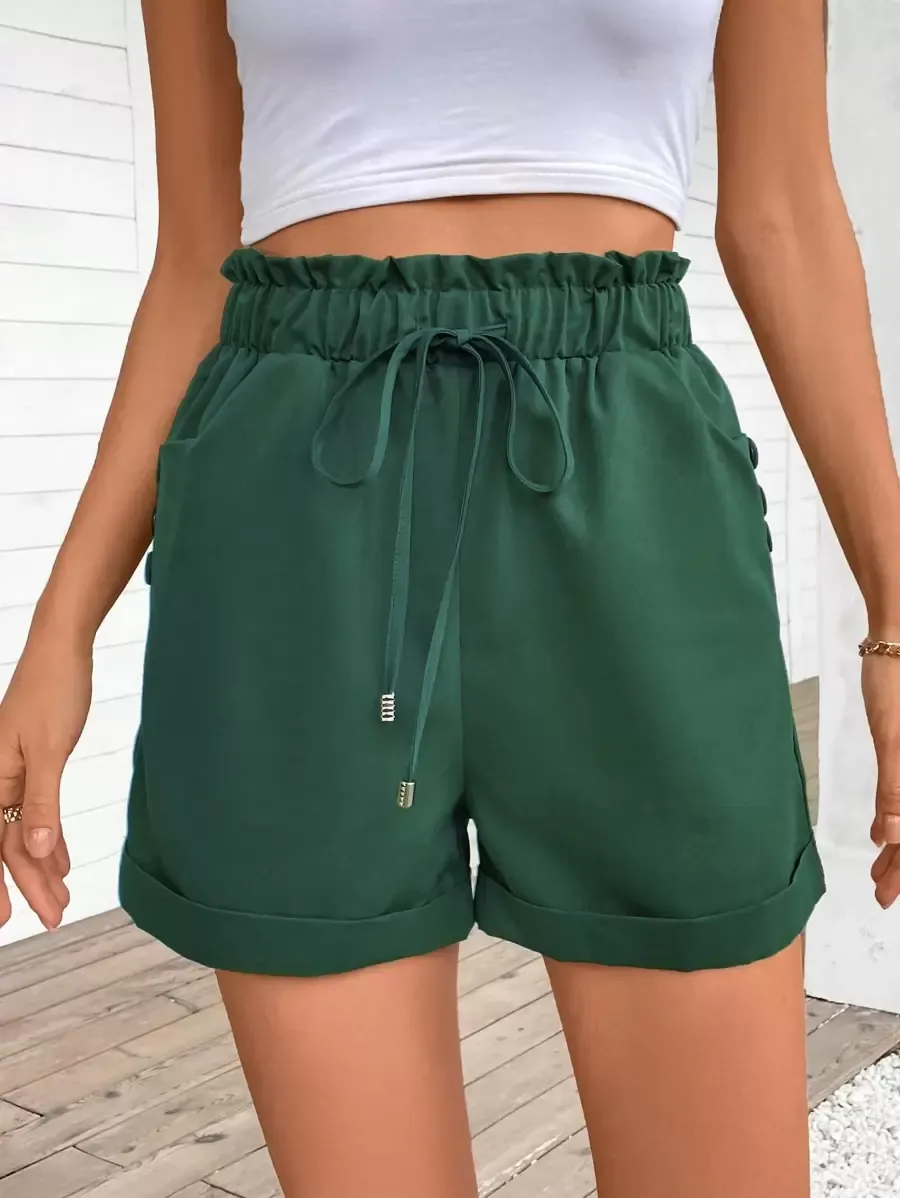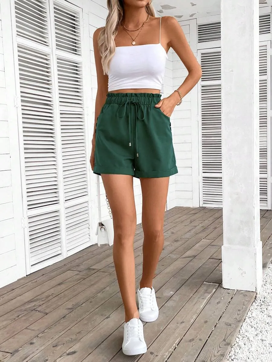 Solid Paper Bag Waist Pockets Casual Versatile Shorts quantity