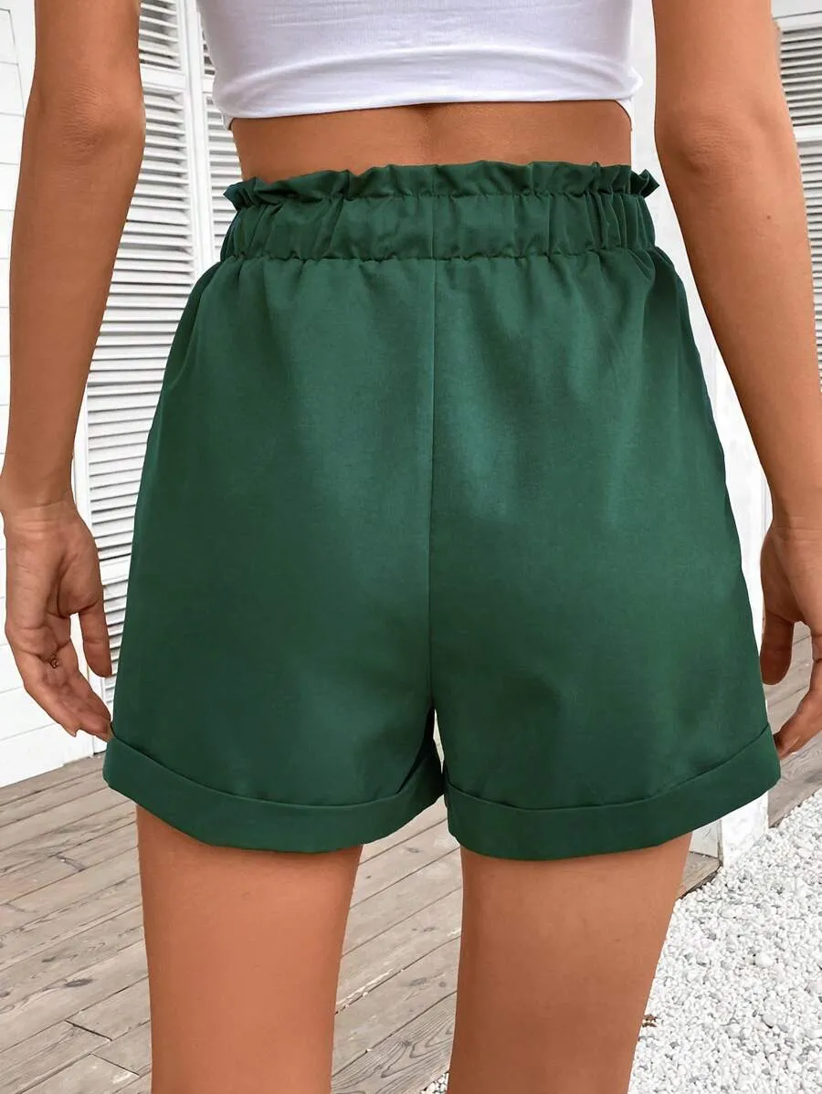 Solid Paper Bag Waist Pockets Casual Versatile Shorts