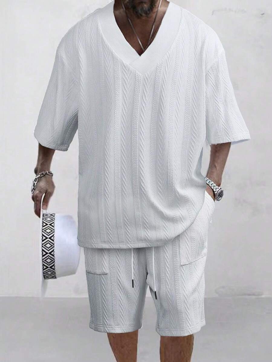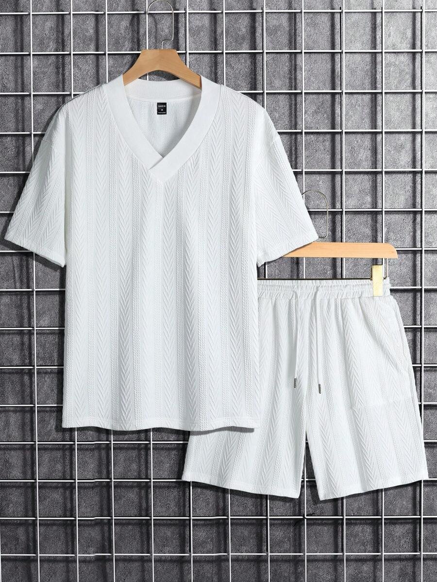 Solid V Neck Tee & Drawstring Waist Shorts quantity