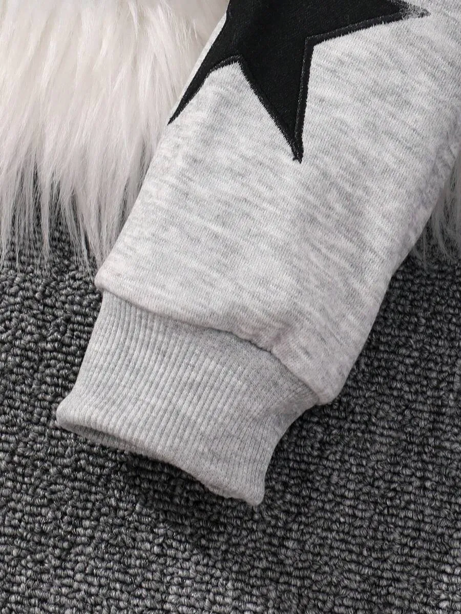 Star Embossed Autumn And Winter Hooded Sweatshirt