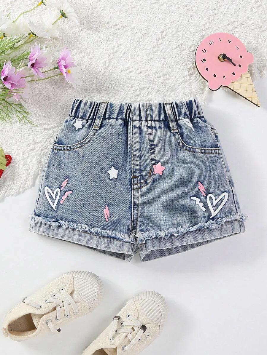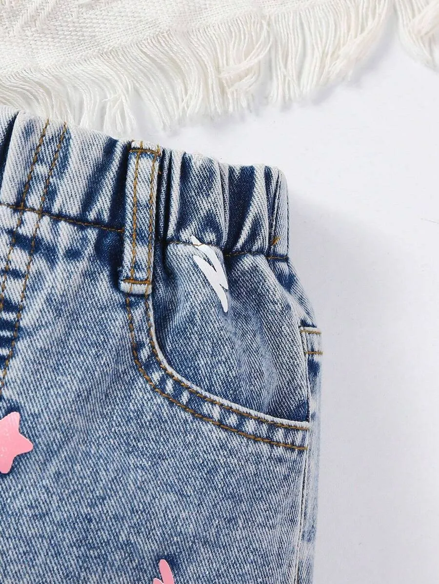Star Print Loose Fit Comfortable Denim Shorts