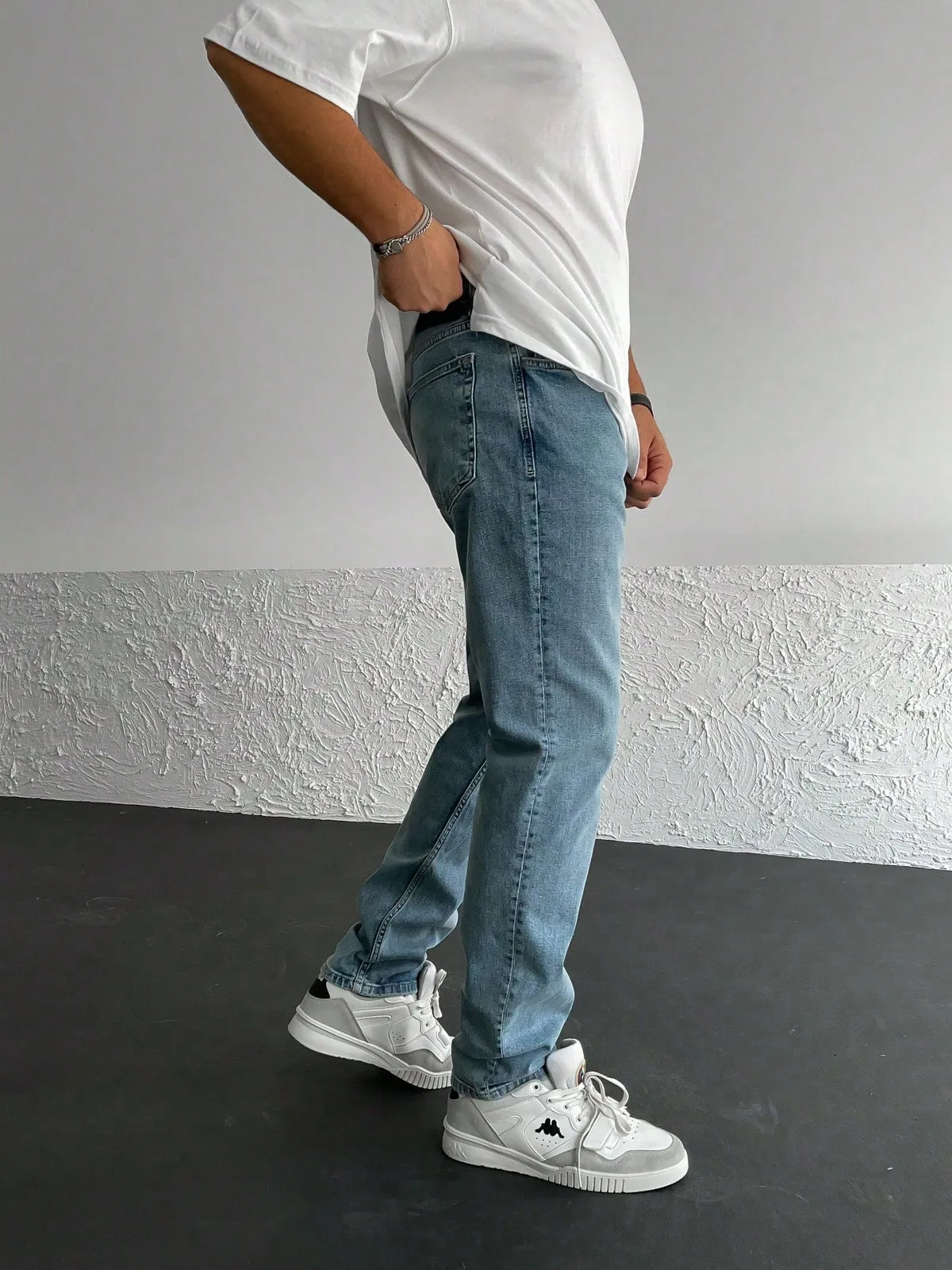 Straight Leg Washed Denim Jeans