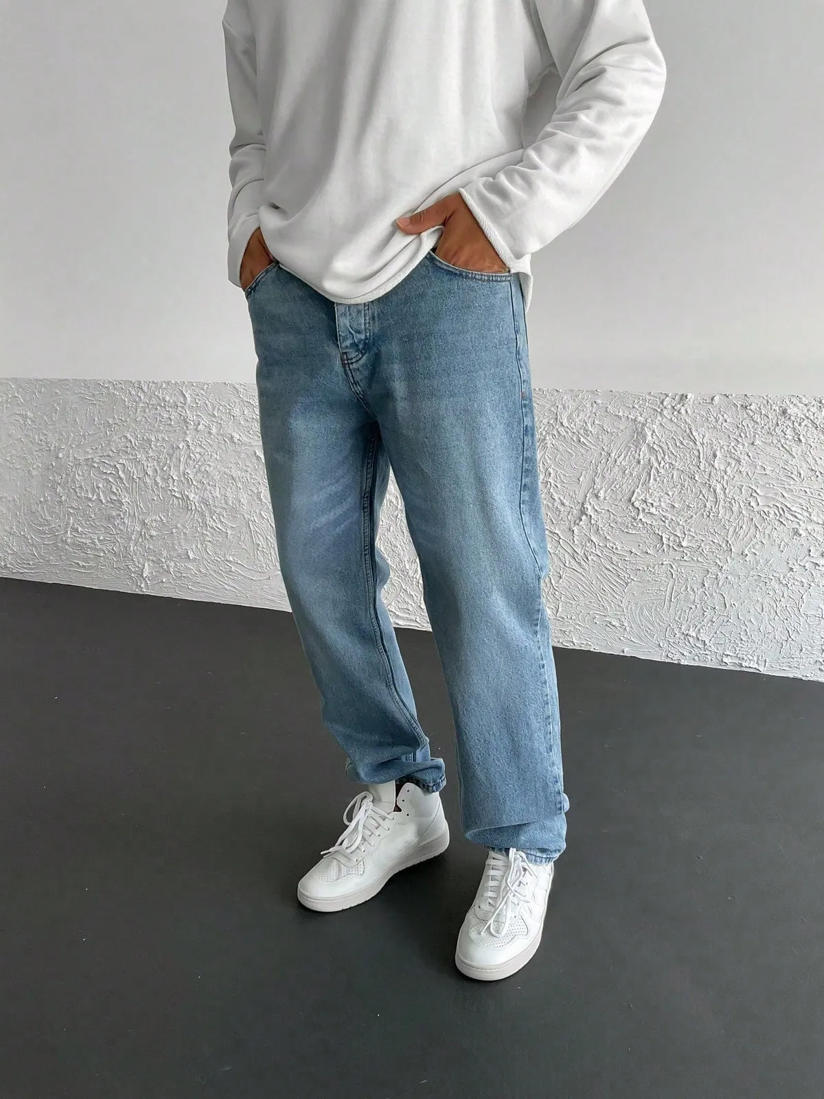 Straight Leg Washed Denim Jeans quantity