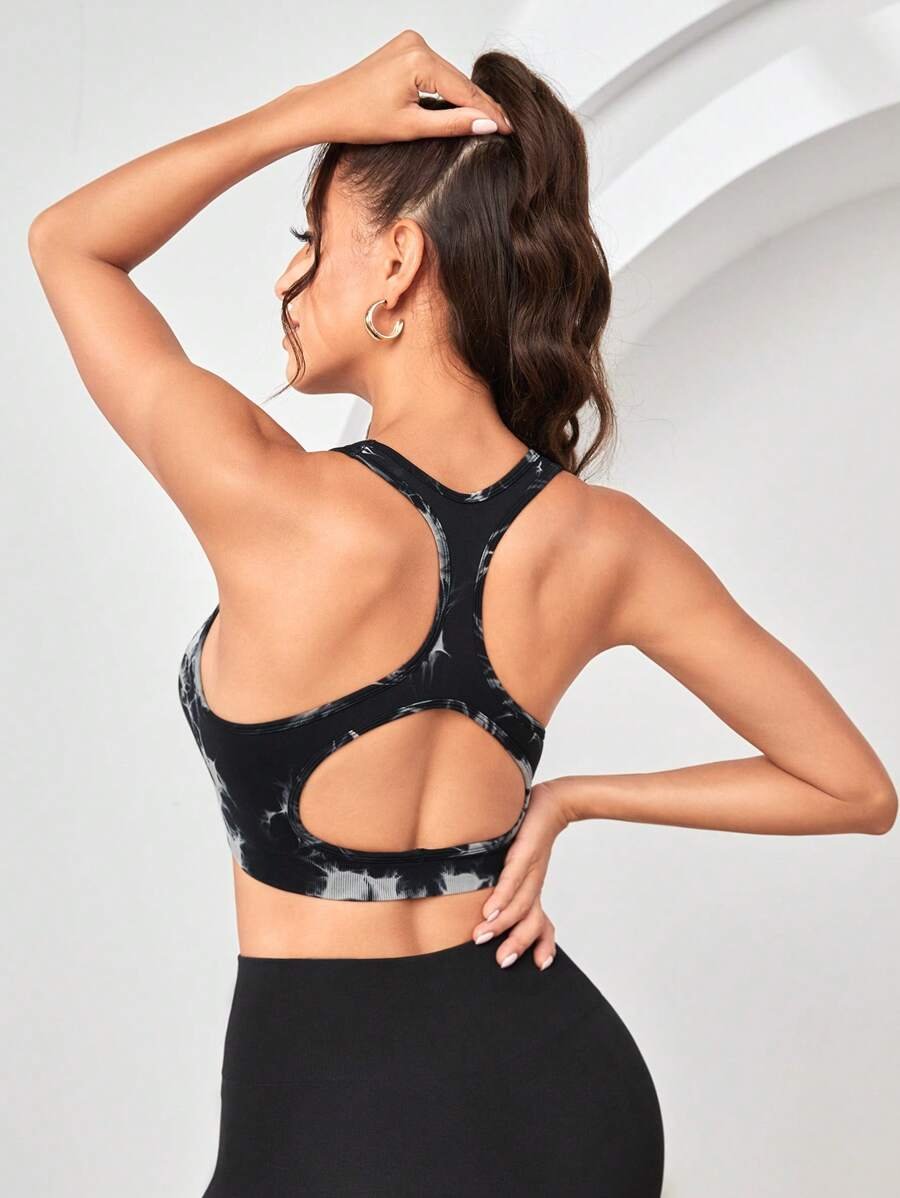 Tie Dye Zip Up Sports Bra black crop top