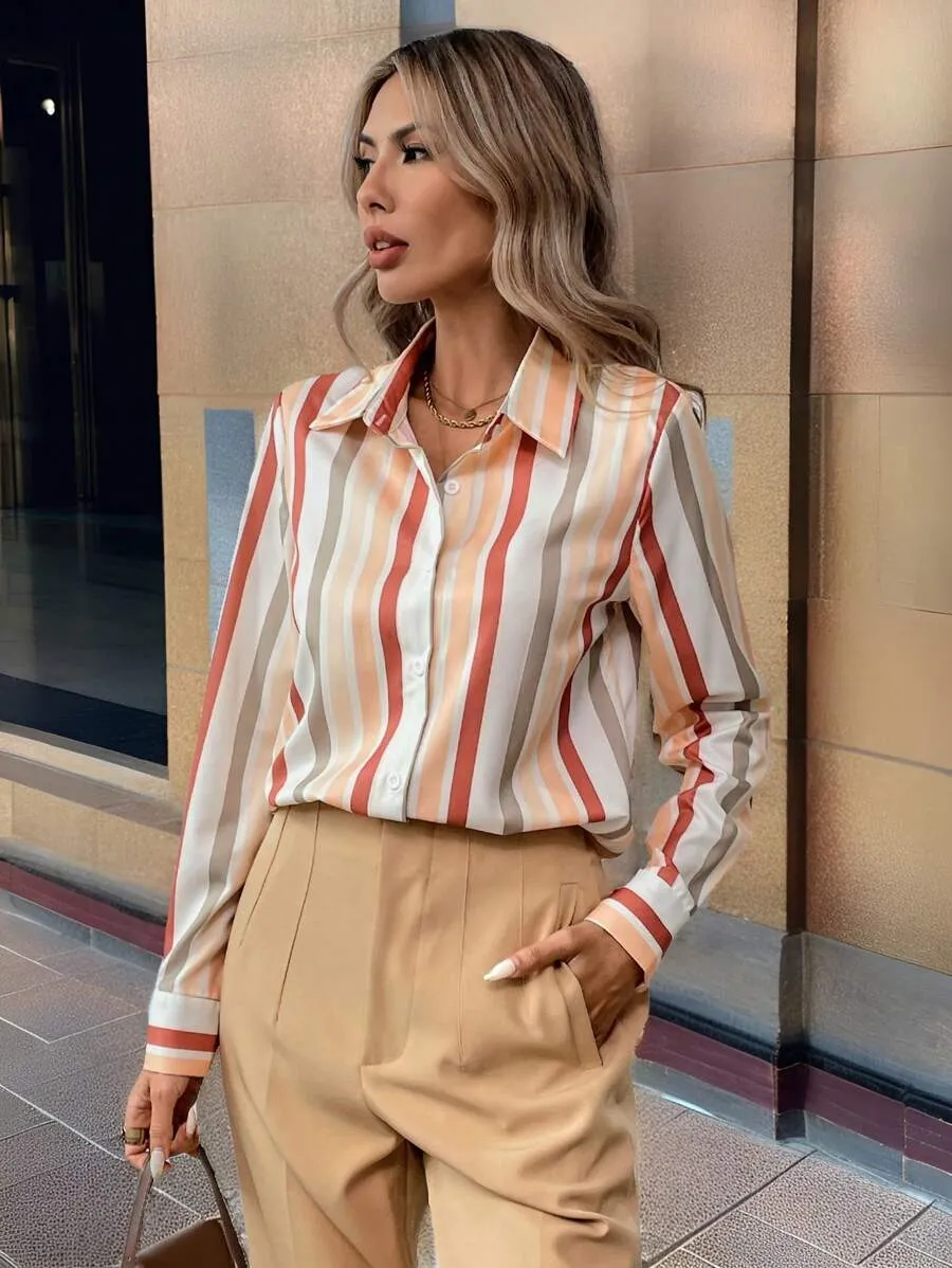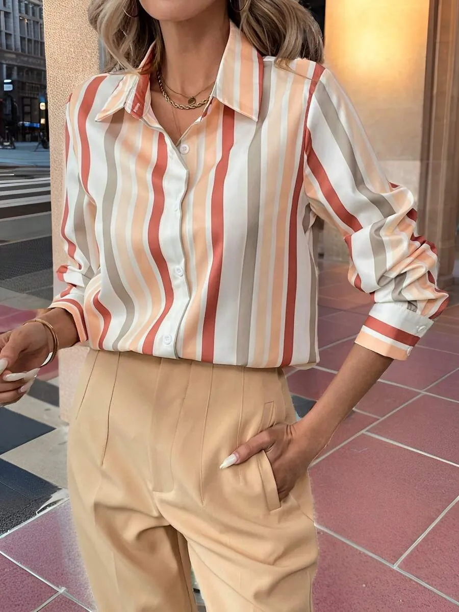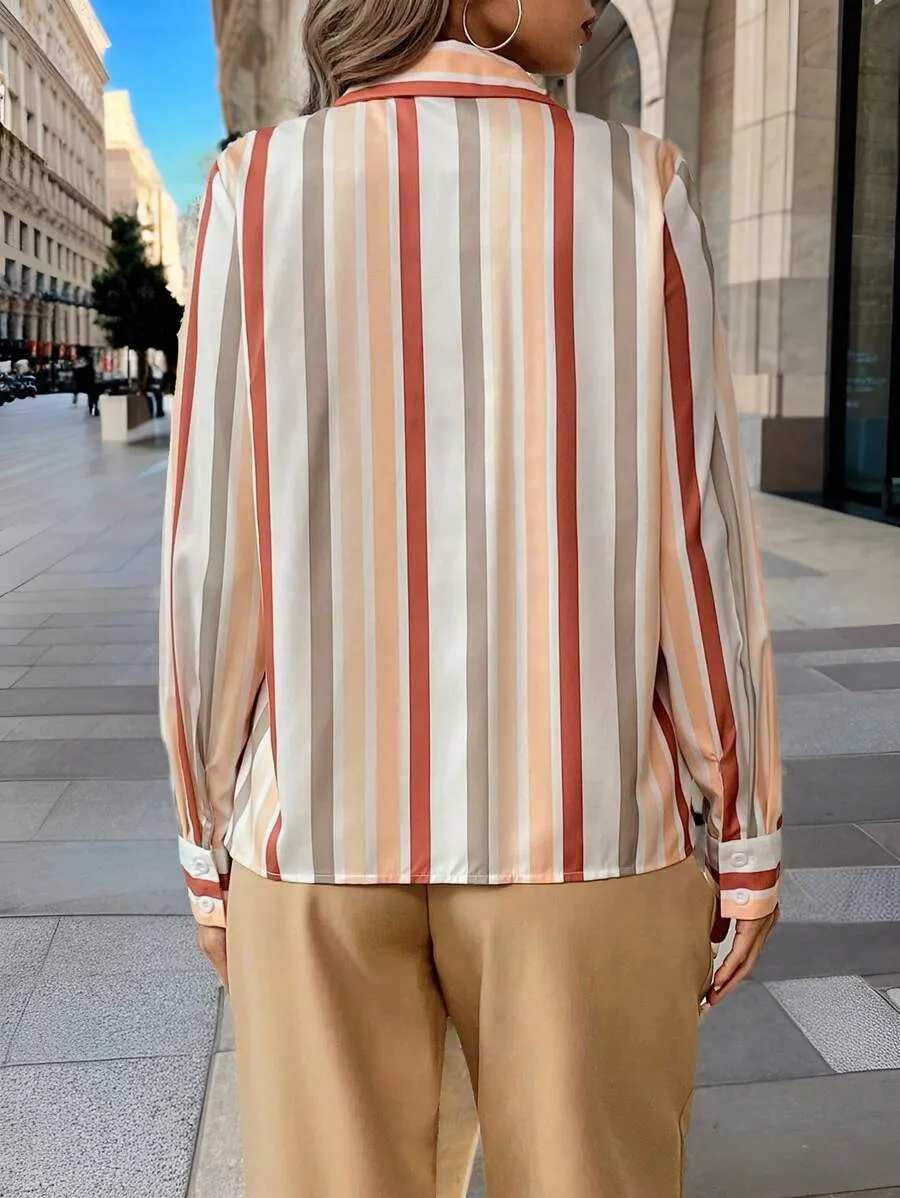 Women Loose Long Sleeve Casual Striped Shirt quantity
