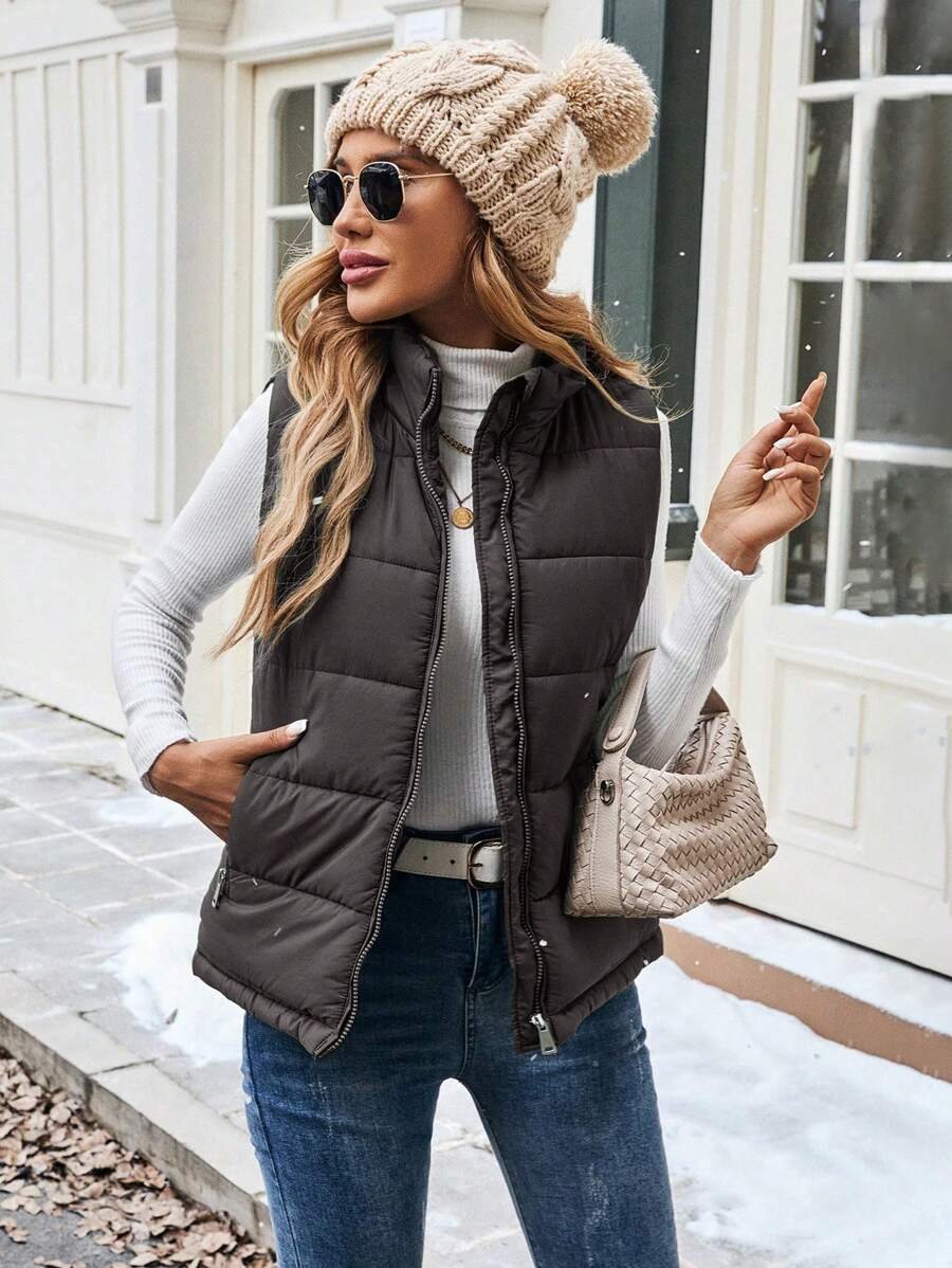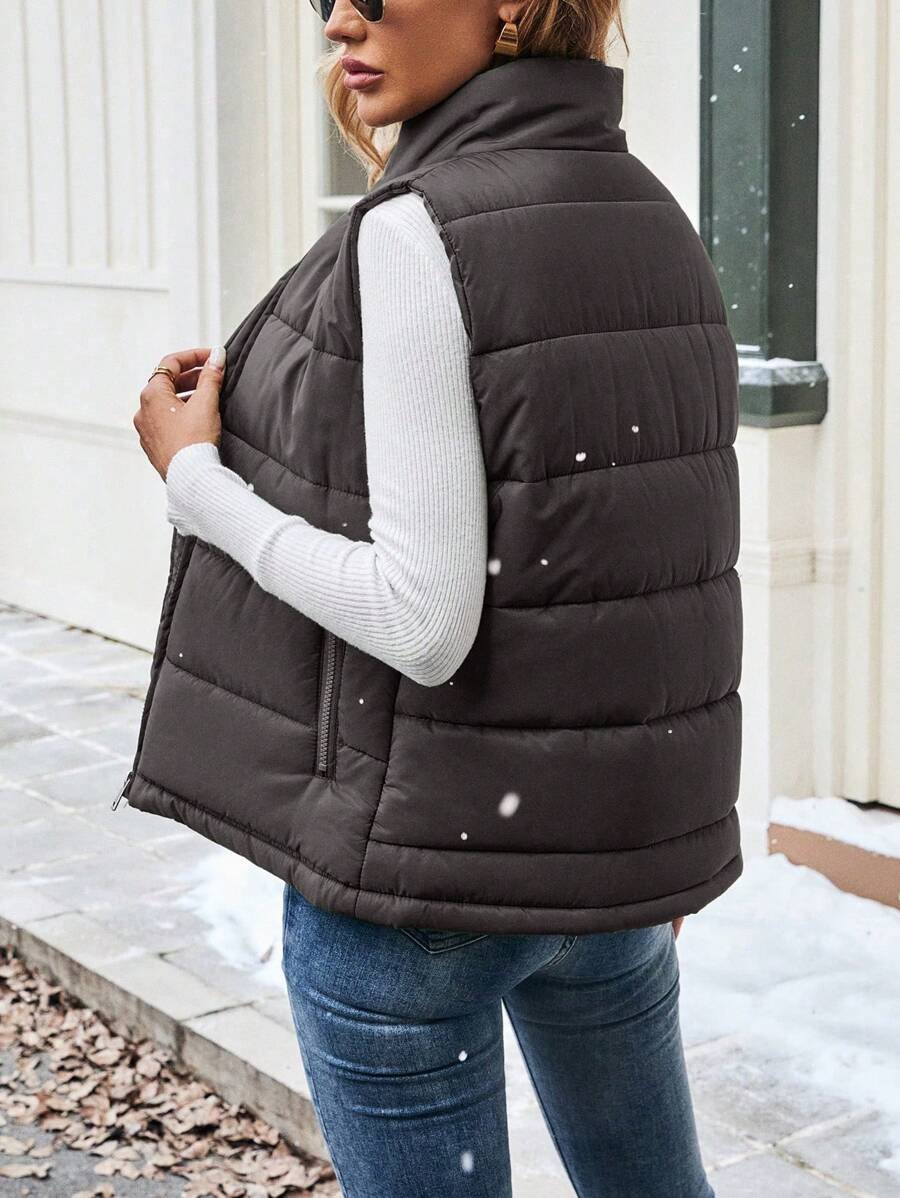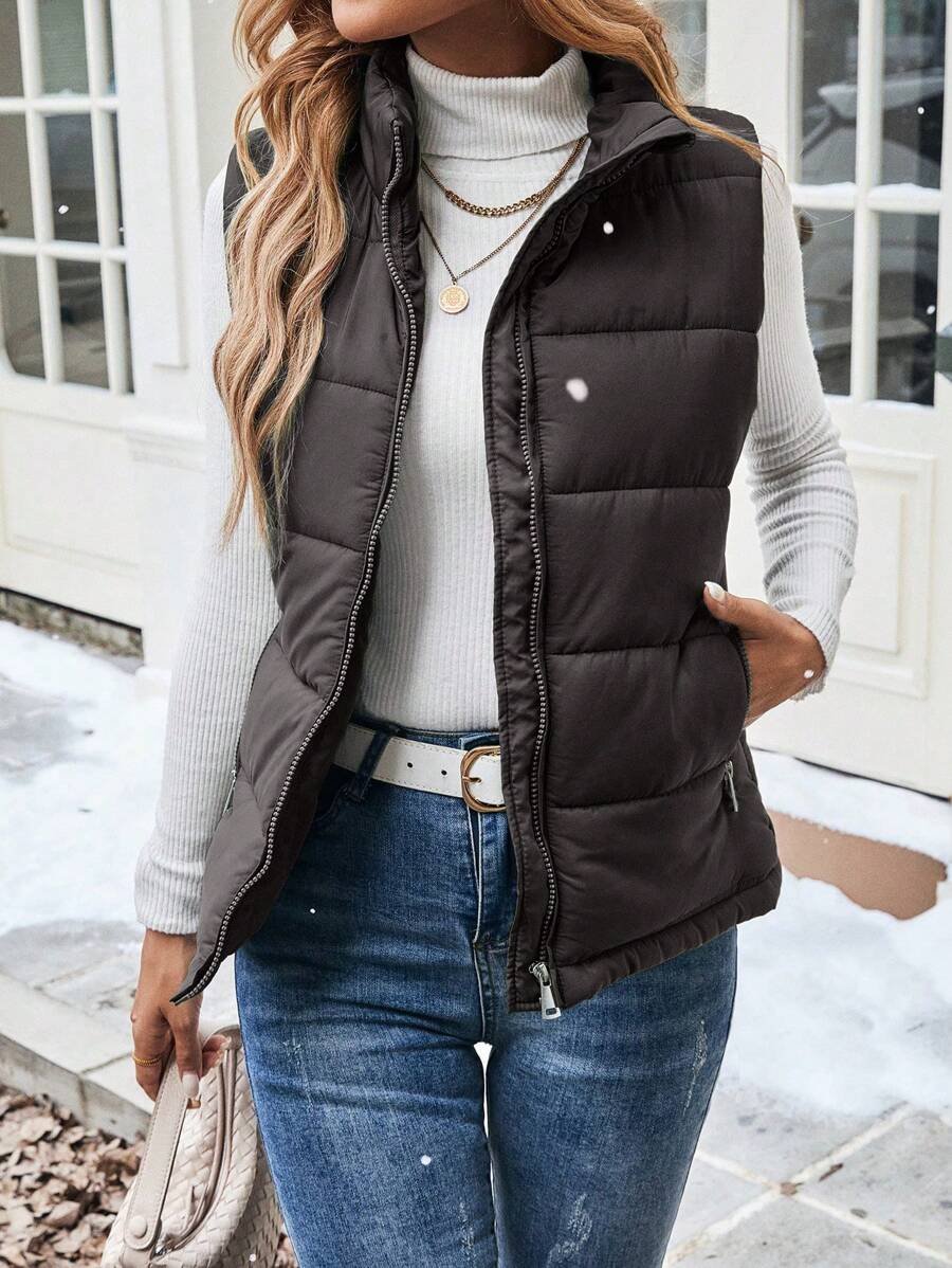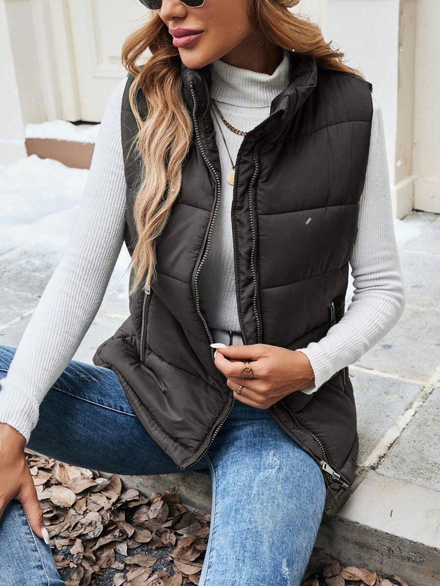 Women Solid Zip Closure Pockets Casual Winter Clothes