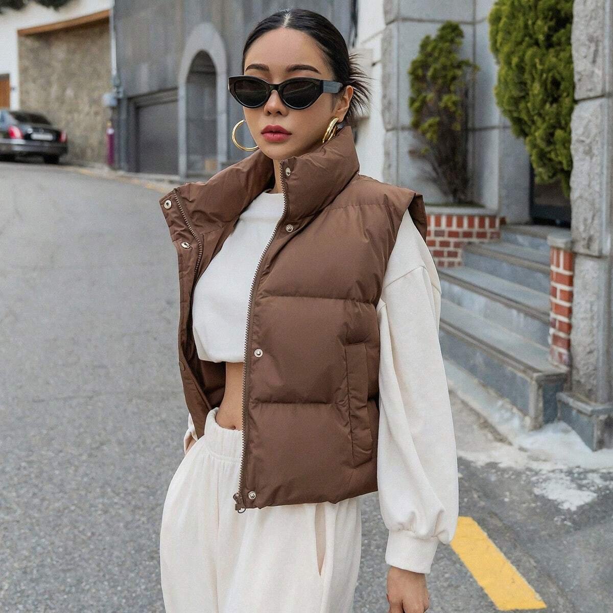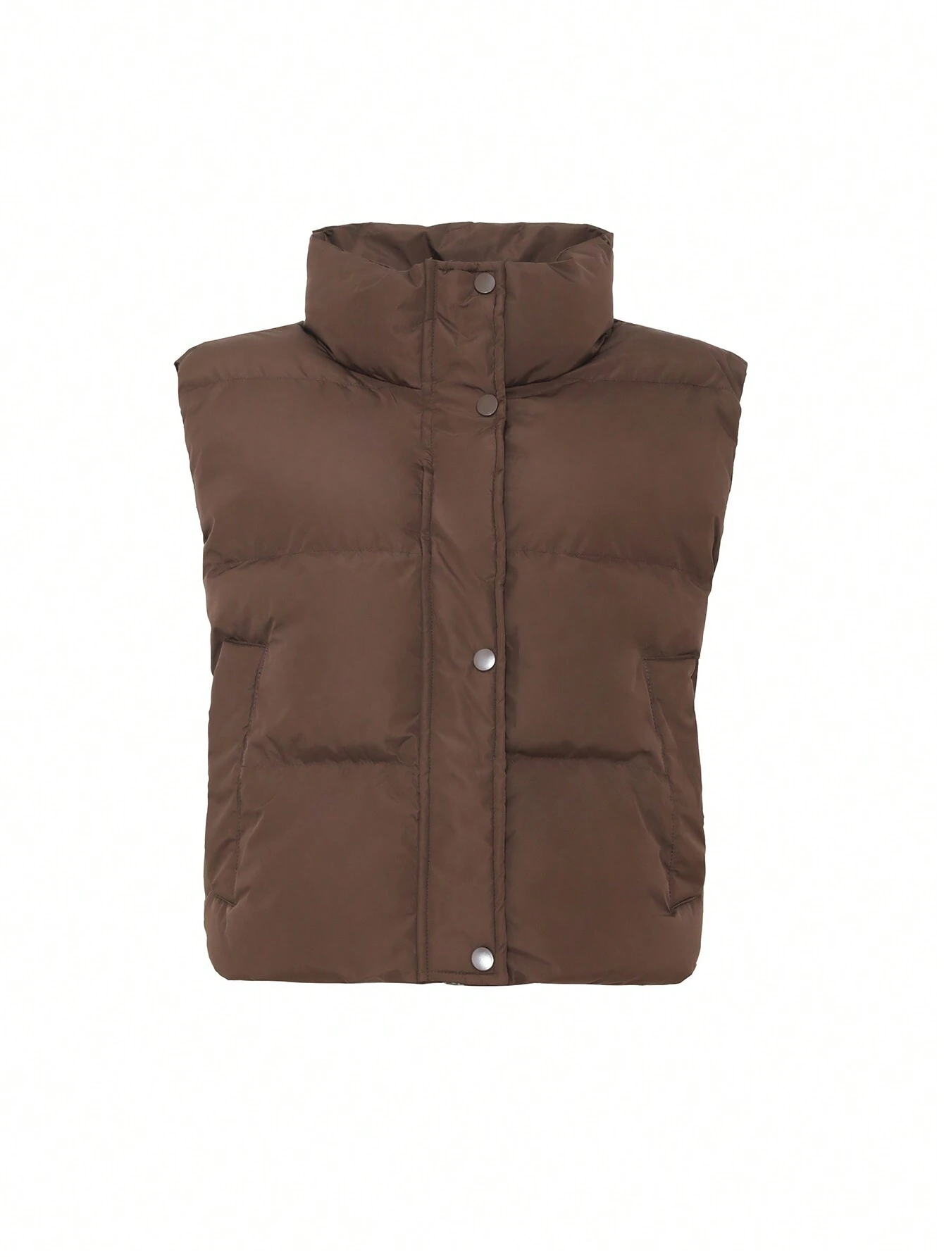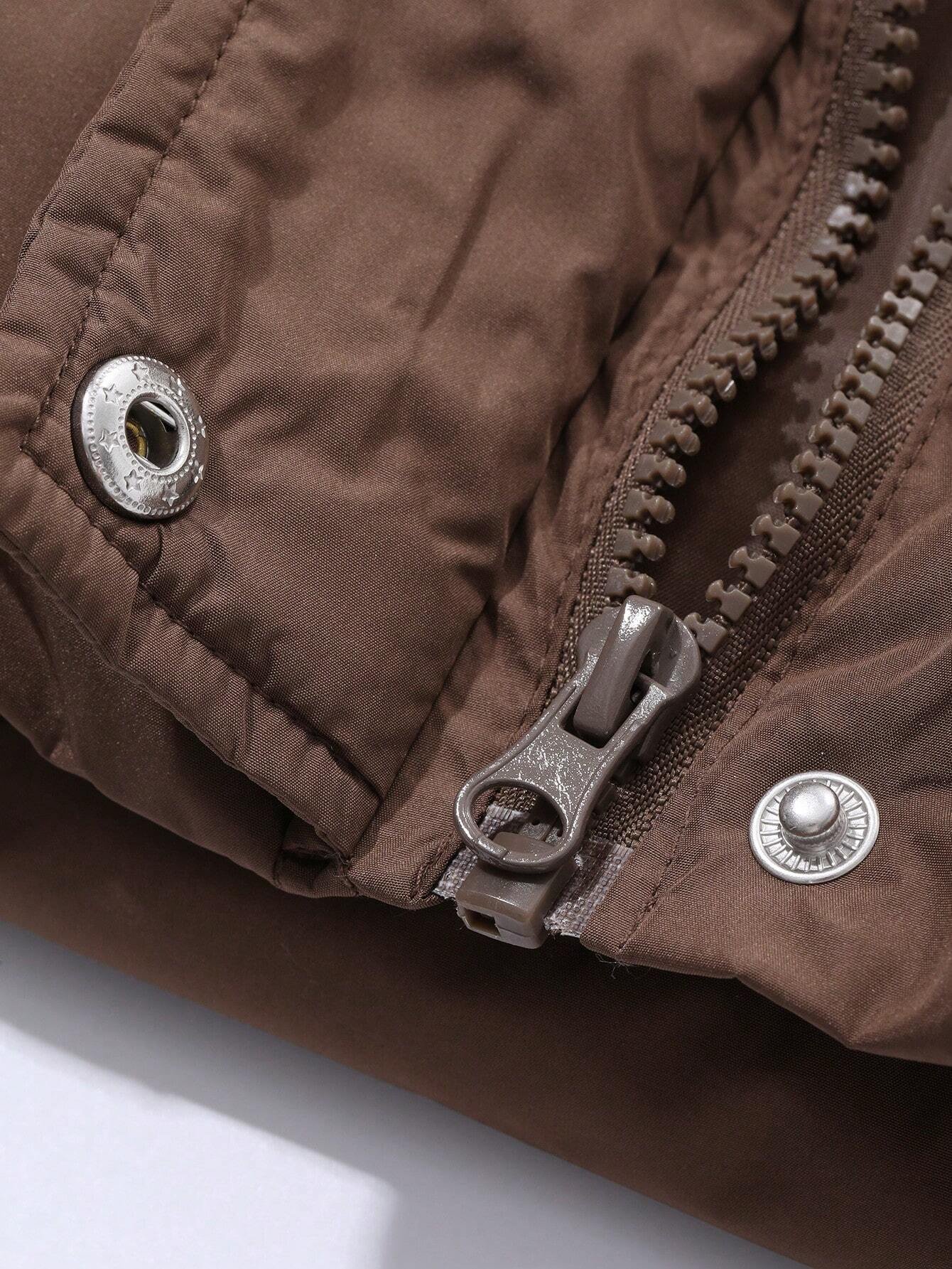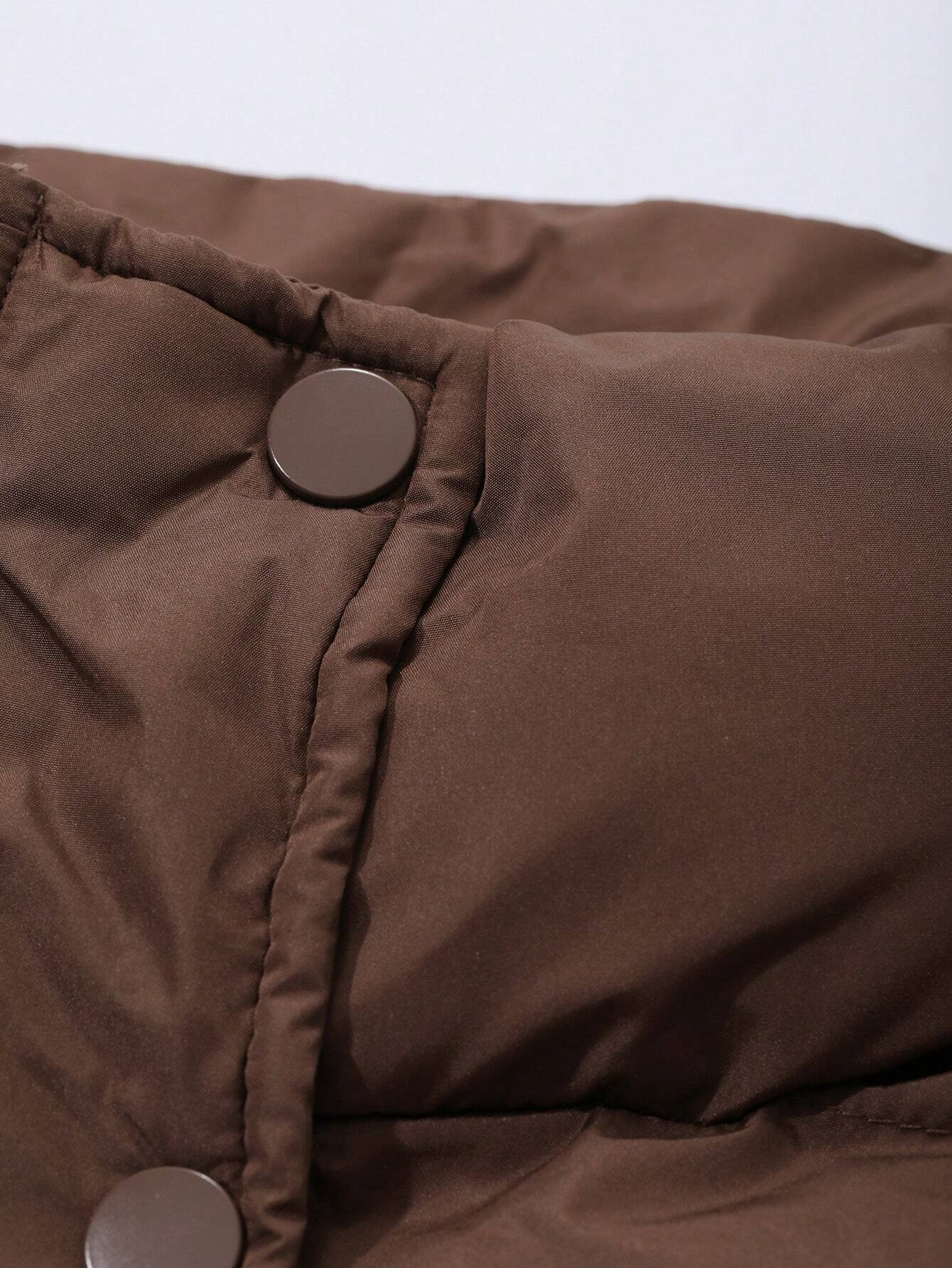 Zip Up Snap Button Padded Vest Pockets Coat quantity