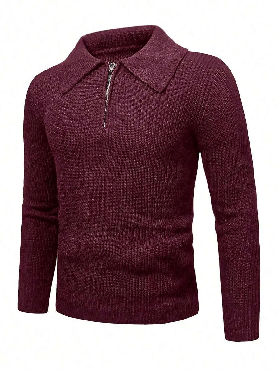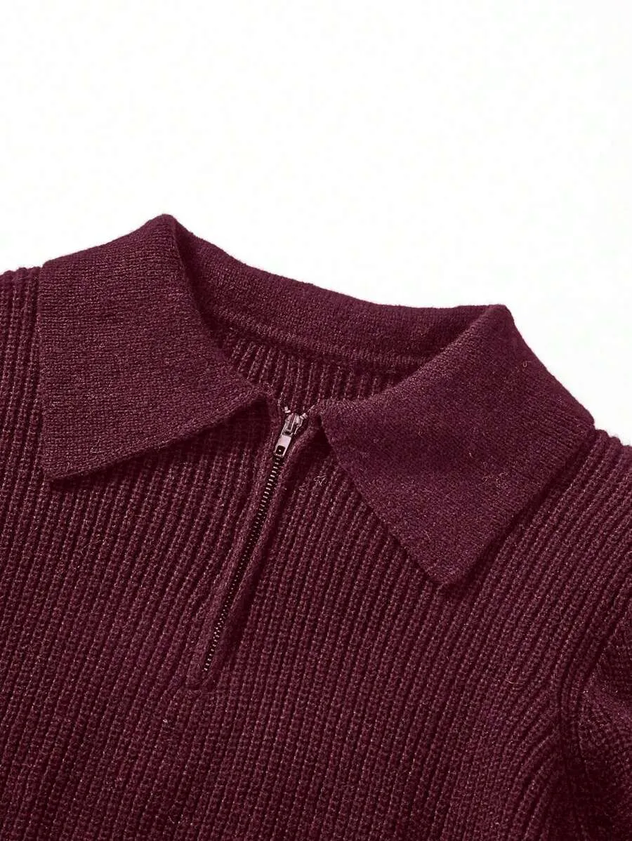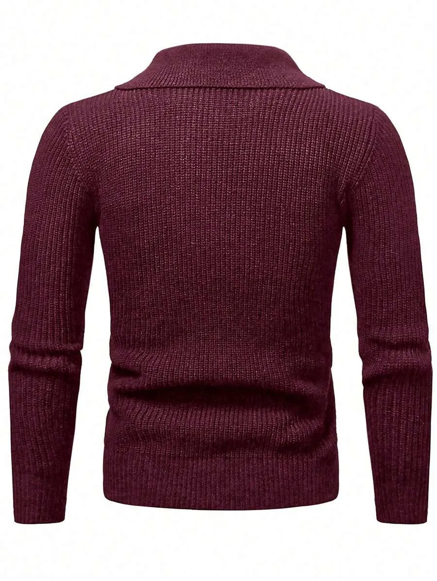 Zipper Long Sleeve Plain Casual Loose Comfy Knitted Collar Sweater