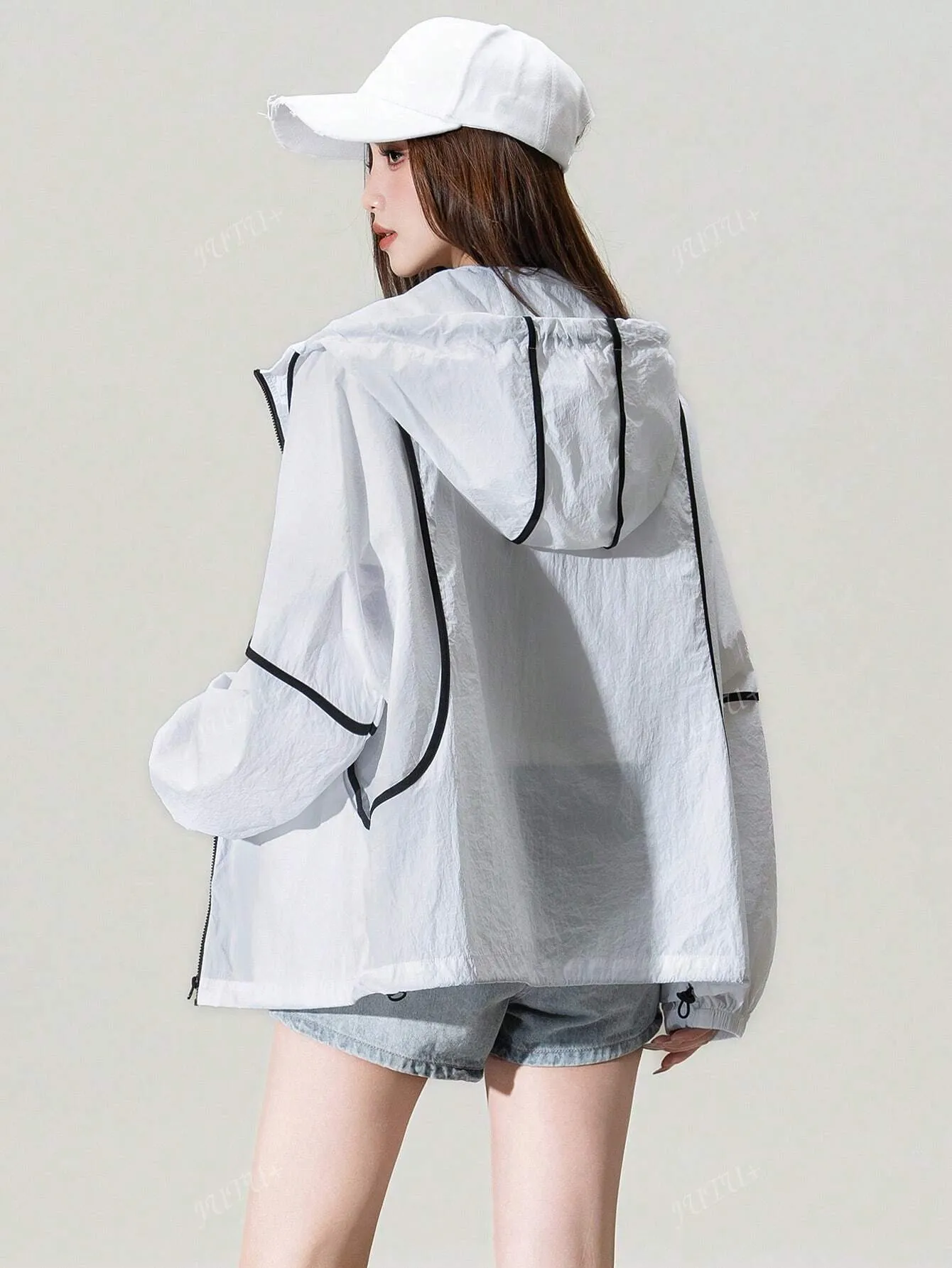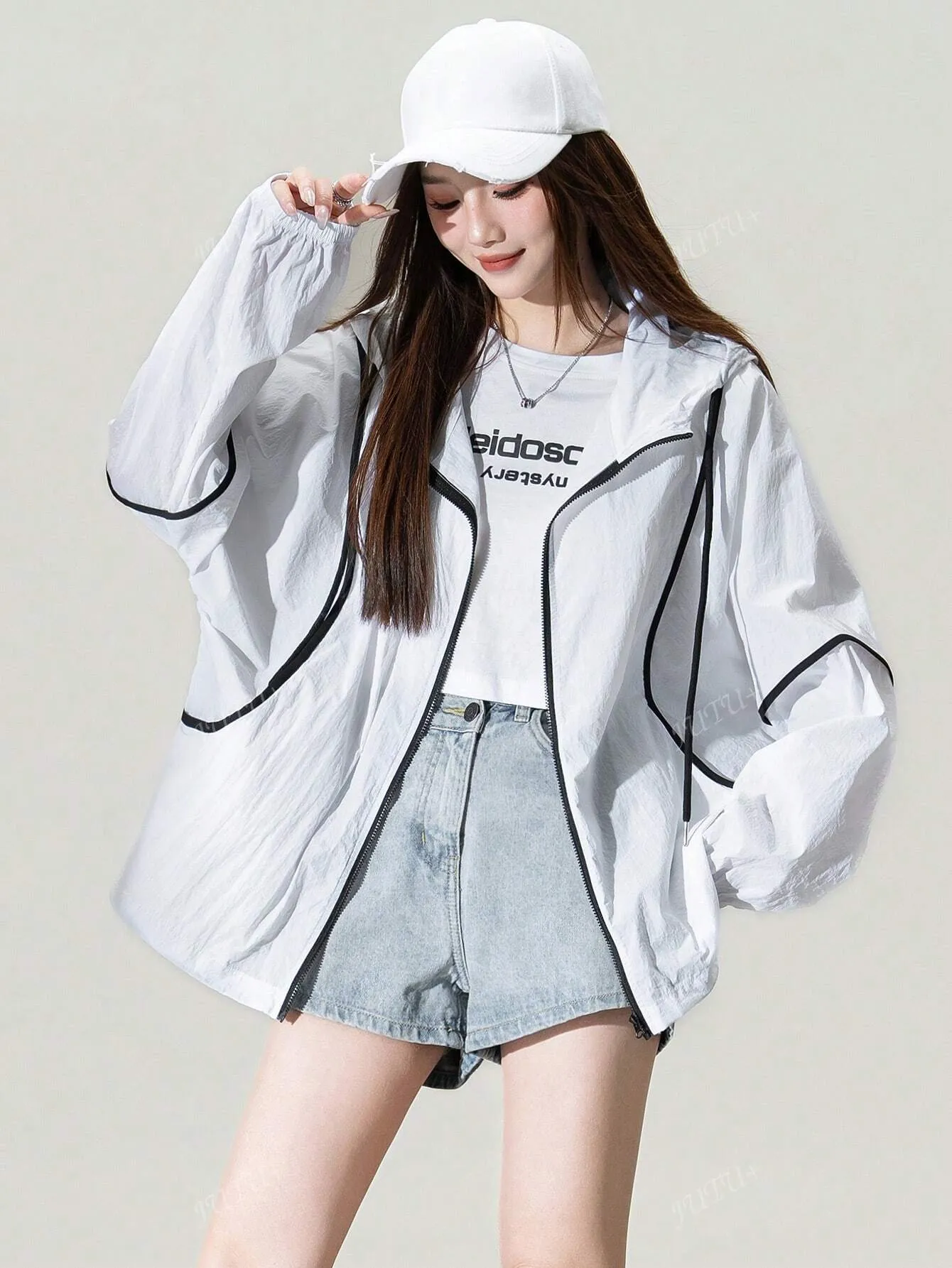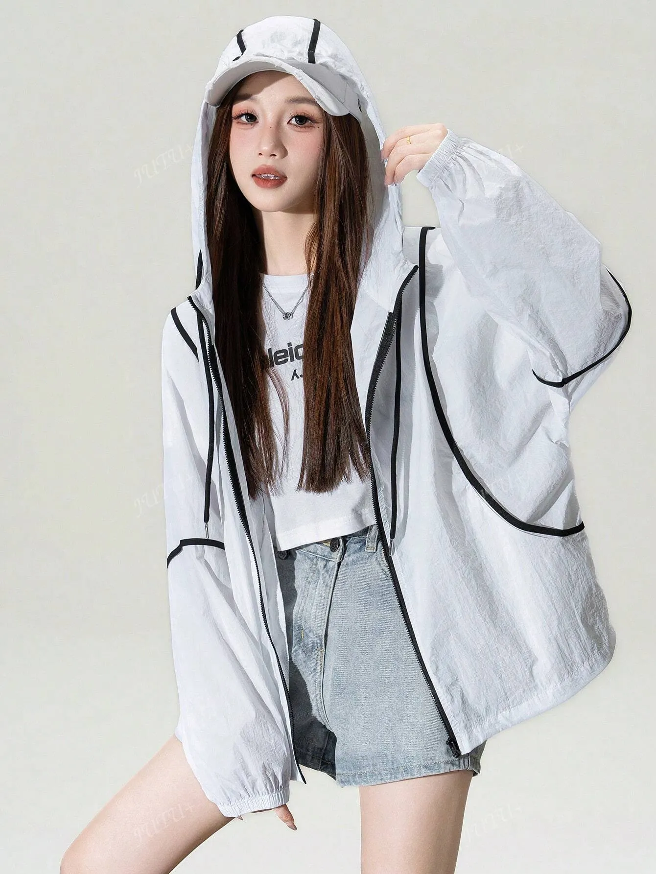 Zipper Pocket Oversized Colorblock Casual Lightweight Windbreaker Jacket