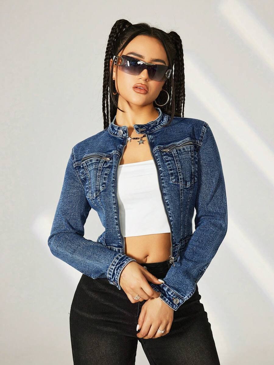 Casual Streetwear Star Print Washed Denim Cargo Pants
